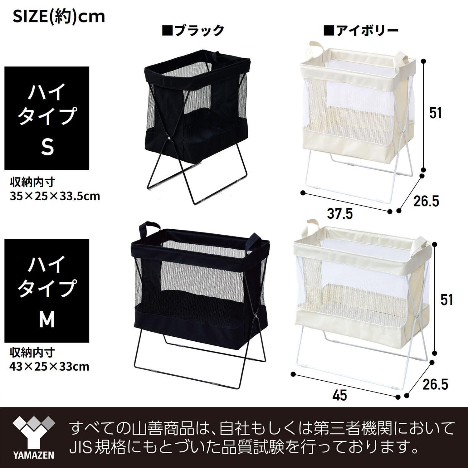 山善(YAMAZEN) 荷物置き 収納ボックス (ハイタイプ) 折りたたみ 通気性 M(幅45×奥行26.5×高さ51cm) 収納 ランドリーラック かんたん組み立て ブラック HTB-MH(BK)