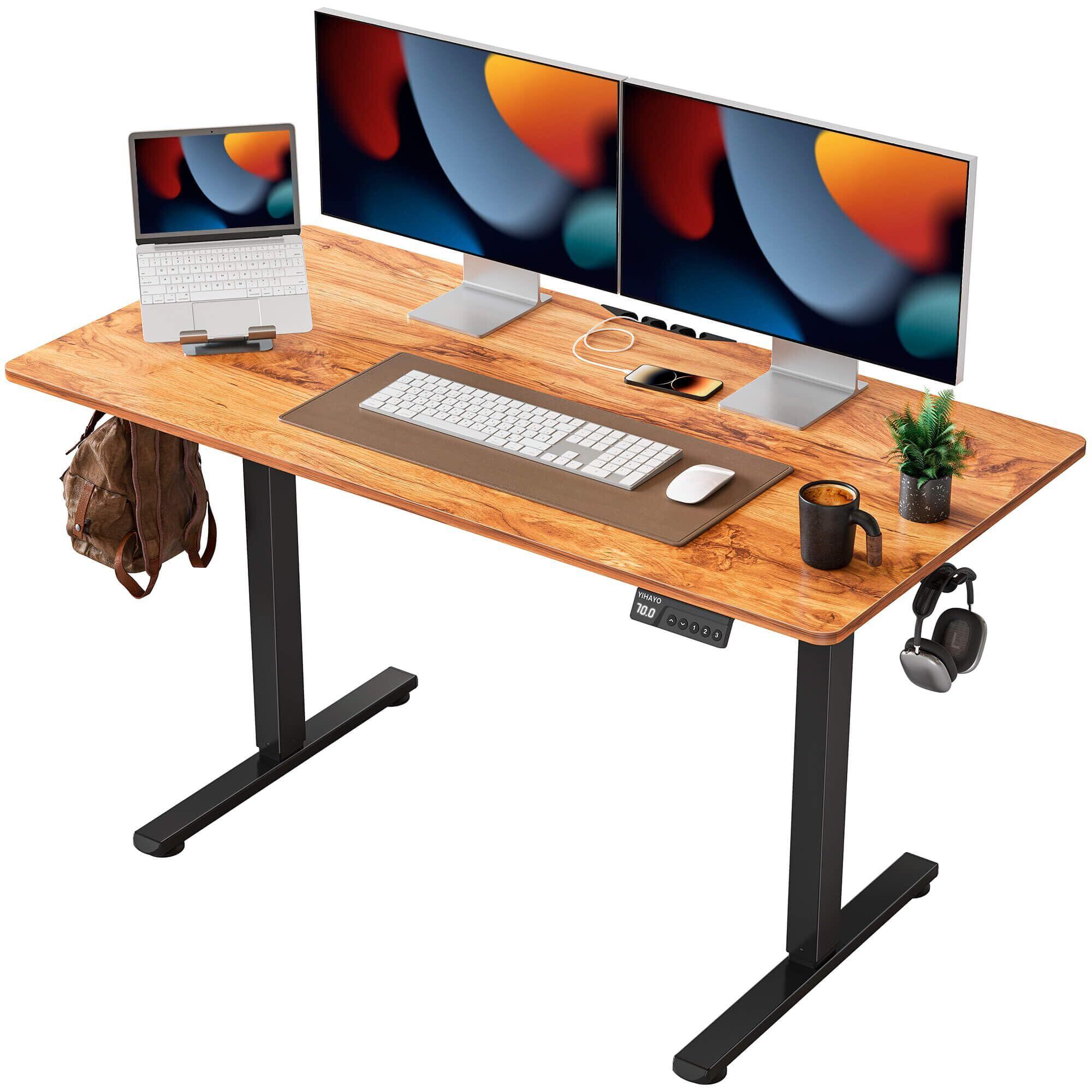 YIHAYO 昇降デスク 一枚板 高さ70-115cm 幅120cm 奥行き60cm 電動 スタンディングデスク 昇降式デスク 高さメモリー機能 上下自動昇降 静音 収納フック付き 組み立て簡単 パソコンデスク ワークデスク オフィスデスク (ブラウン)
