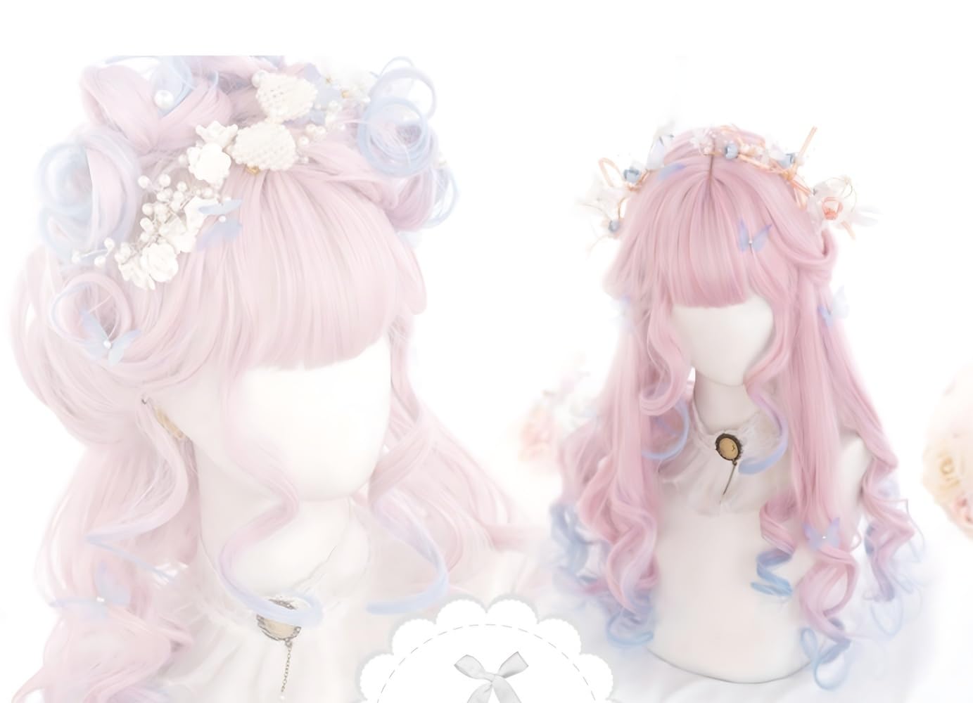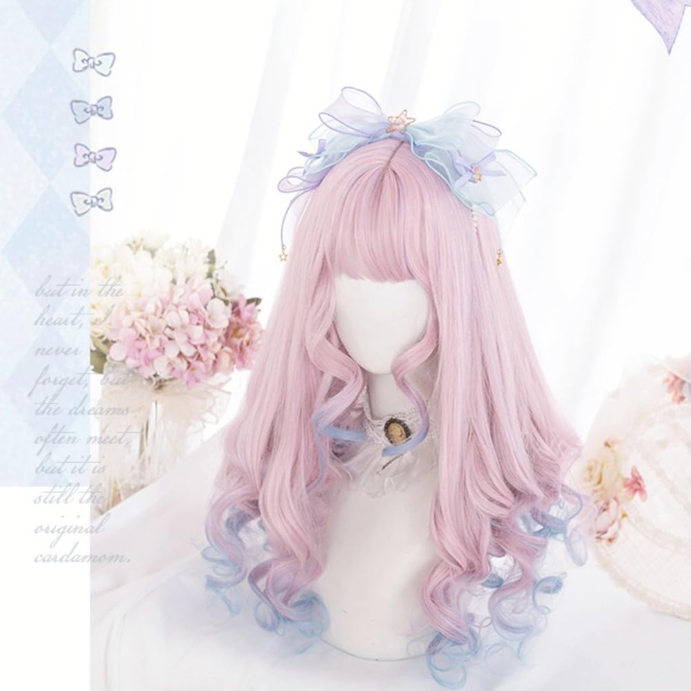 RyuuCos ロリータ かつら ロングヘア カール 巻き髪 ピンク ウィッグ サクラグラデーションブルー コスプレ 耐熱性 変装 仮装 プレゼント イベント ハロウイン クリスマス 学園祭 文化祭 お祭り