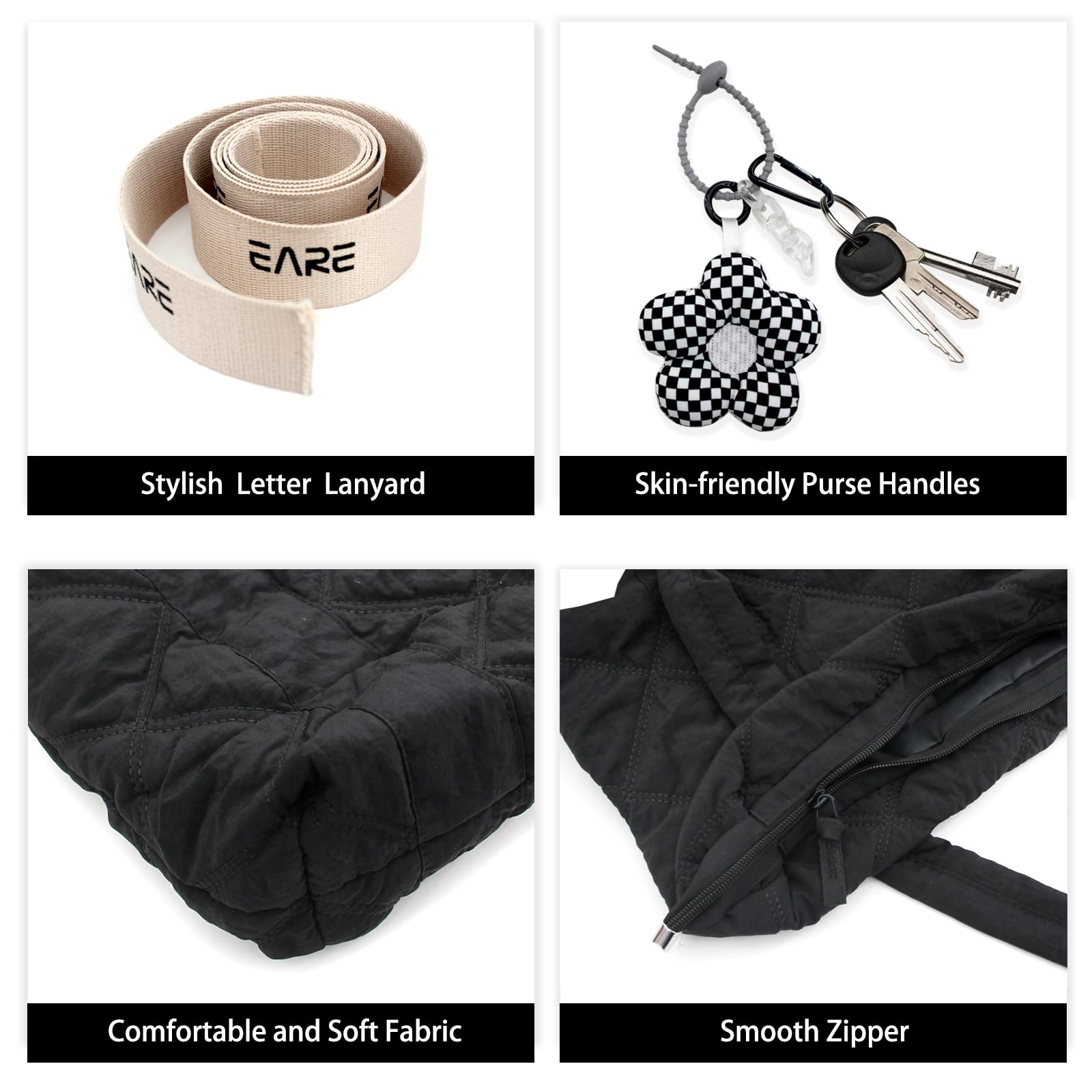 [boshiho] キルティング トートバッグ レディース ファスナー付き 可愛い 軽量 大容量 ふわふわ ナイロンマザーズバッグ シンプル ショルダーバッグ 通勤 通学 旅行 出張 おしゃれ 男女兼用