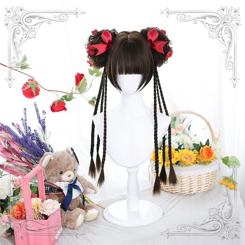 コスプレウィッグ ツインテール lolita ロリータ風 ショート耐熱ウィッグ ゴシック ライトブラウン 森ガール ゆめかわいい 自然 お姫 小顔 女性 レディース パーティー 仮装 演劇 日常 かつら wig (ダークブラウン)
