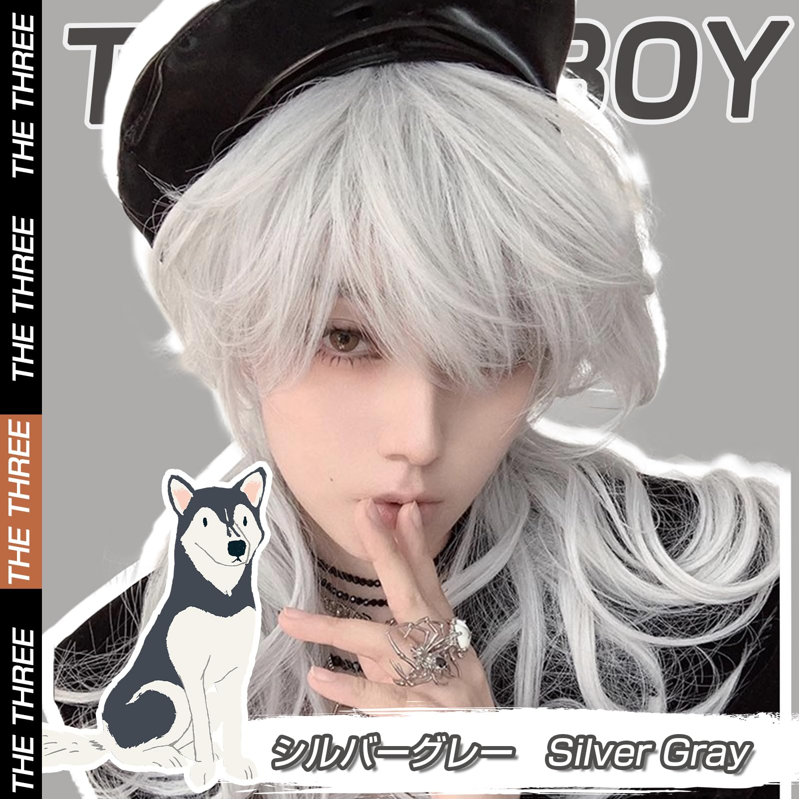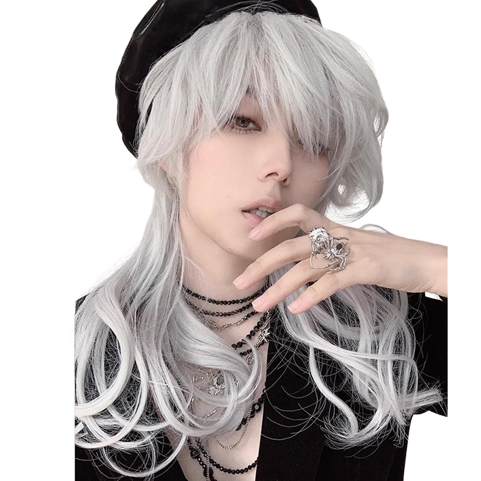 Hawkko ウィッグ メンズ ショート ウルフ カール フルウィッグ ロング かつら 男装ウィッグ 黒 男性 ウルフカット カツラ メンズ 原宿 イケメン ハンサム 男性用 自然 小顔 耐熱 人気 ファッション イメチェン ハロウィン 男女兼用 (シルバーグレー)