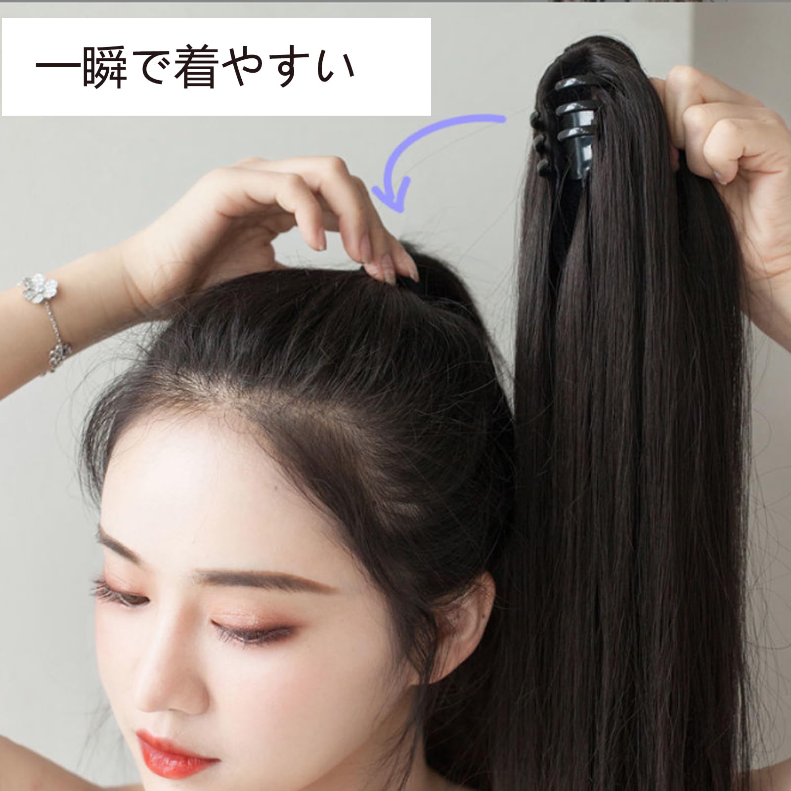 HAPVITAL レディース ポニーテールウィッグ 自然 クリップ式 ロング ストレート ヘア エクステ ポイントウィッグ 人気 結婚式 七五三 成人式 卒業式 和装 着物 浴衣 (ライトブラウン)