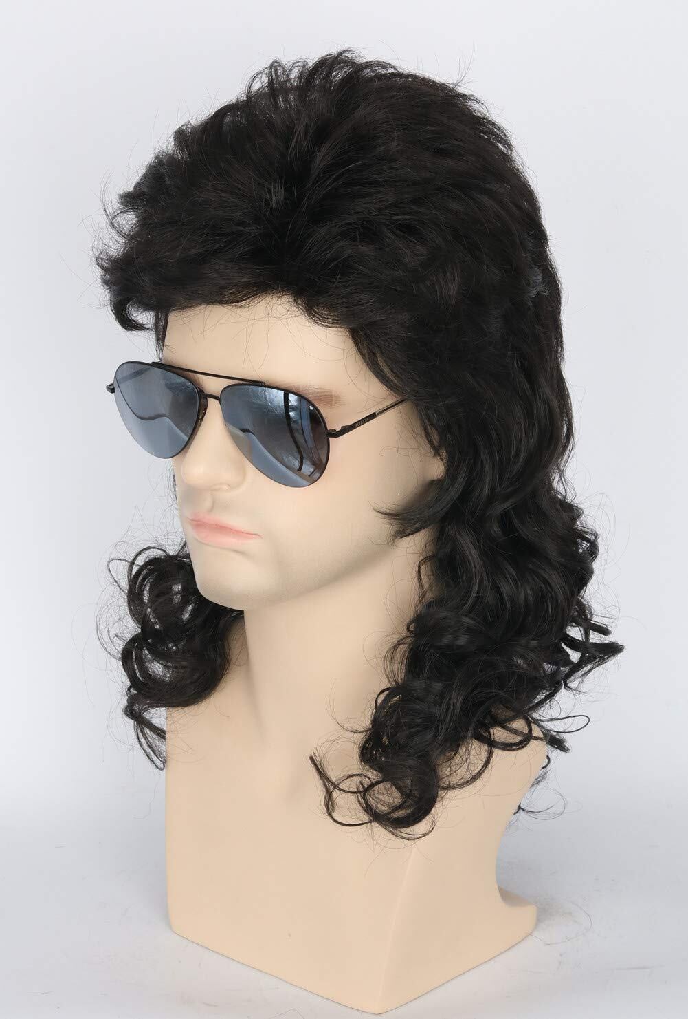 Topcosplay メンズ ウィッグ ロング カーリー 巻き毛 ハロウィーン 80年代のロッカーヘビーメタルパンクカーリーウィッグ コスプレ 仮装用 衣装パーティー (ブラック)