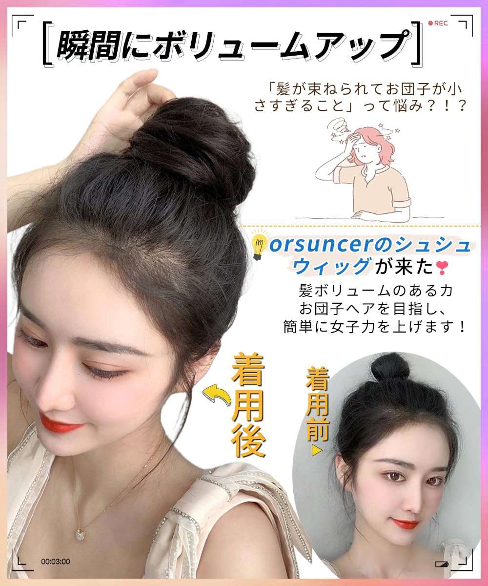 ORSUNCERお団子ウィッグ キッズ シュシュ シニヨン 付け毛 和装 お団子ヘア 自然 装着簡単 ボリューム 普段使い 耐熱 ライトブラウン