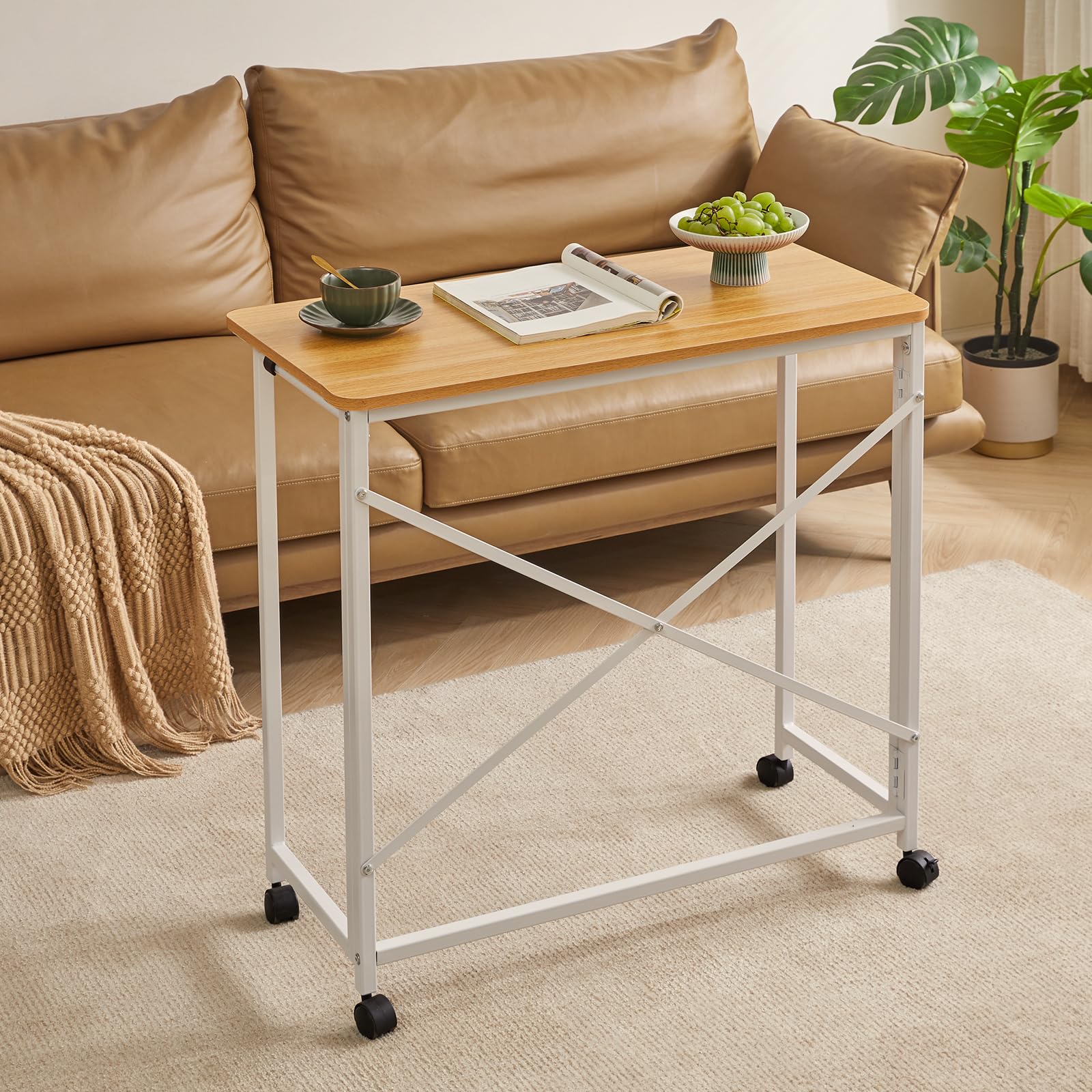 Aibiju 折りたたみデスク 幅80×奥行40×高さ75/77cm アジャスター付き キャスター付き pcデスク ワークデスク 木の色/白 YD-TM002N