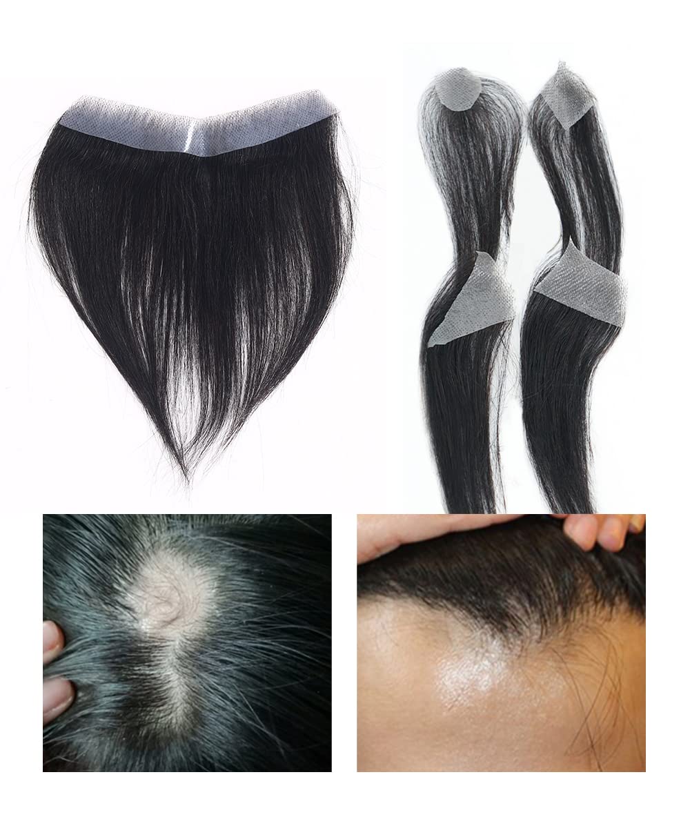 HIYE 部分ウィッグ 生え際 増毛シート 人毛100% 自然 通気性 黒 抜毛症 薄い 增毛シート 生え際 ハゲ隠し 脱毛症 薄毛 貼るかつら 円形脱毛症隠し トップカバー ウィッグ 頭皮部分隠し 円形脱毛症隠し 男性型脱毛症 びまん性脱毛症 レデイーズ メンズ シール式 極薄タイプ 部分かつら (横15.5CMx縦2.2CM-15cm 自然黒)