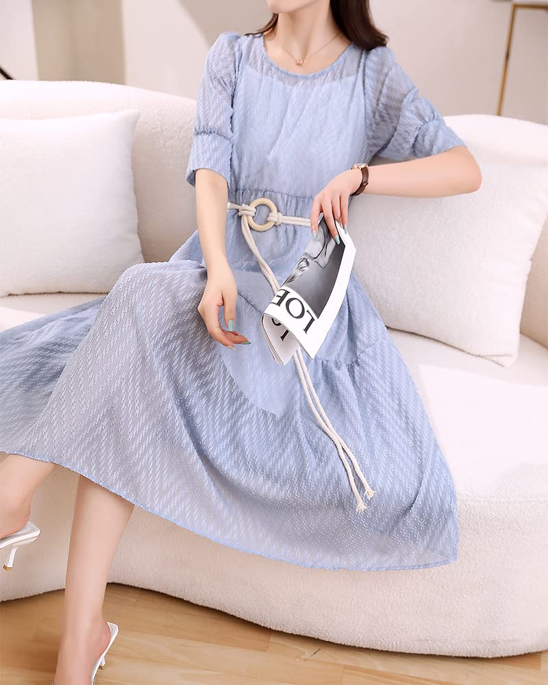 [Collecala] 白ワンピース レディース 夏 半袖マタ二ティオーバーサイズキャミわんぴーすセットアップ オフホワイト ふんわり ミモレロング サマ白ワンピースピース ロングワンピ キャミ+ワンピース+紐ベルト3点セット