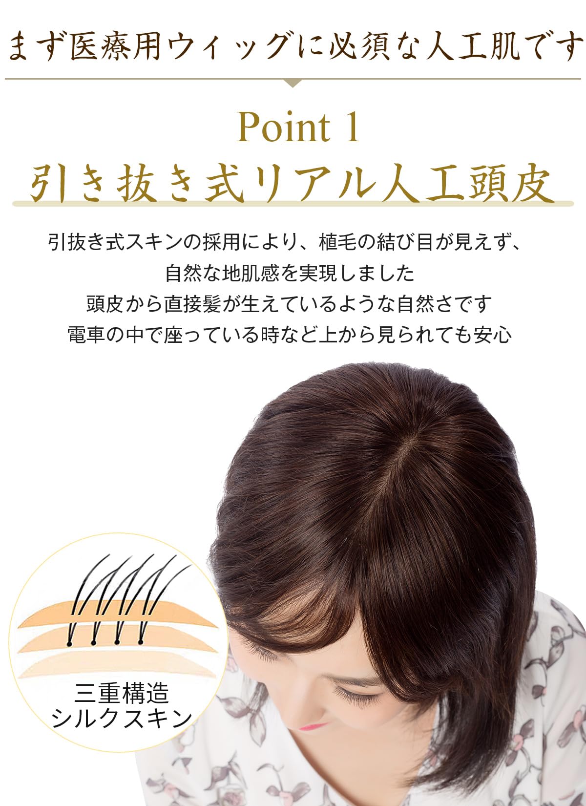 レミーヘアー100%ウィッグ:100%の高級人毛だけを使用した部分ウィッグは、自然な触感や動きを備え、光沢や質感が自毛と同様です。これは化学繊維と比較して非常に自然な印象を与え、光の反射や髪の流れもリアルに再現されます。