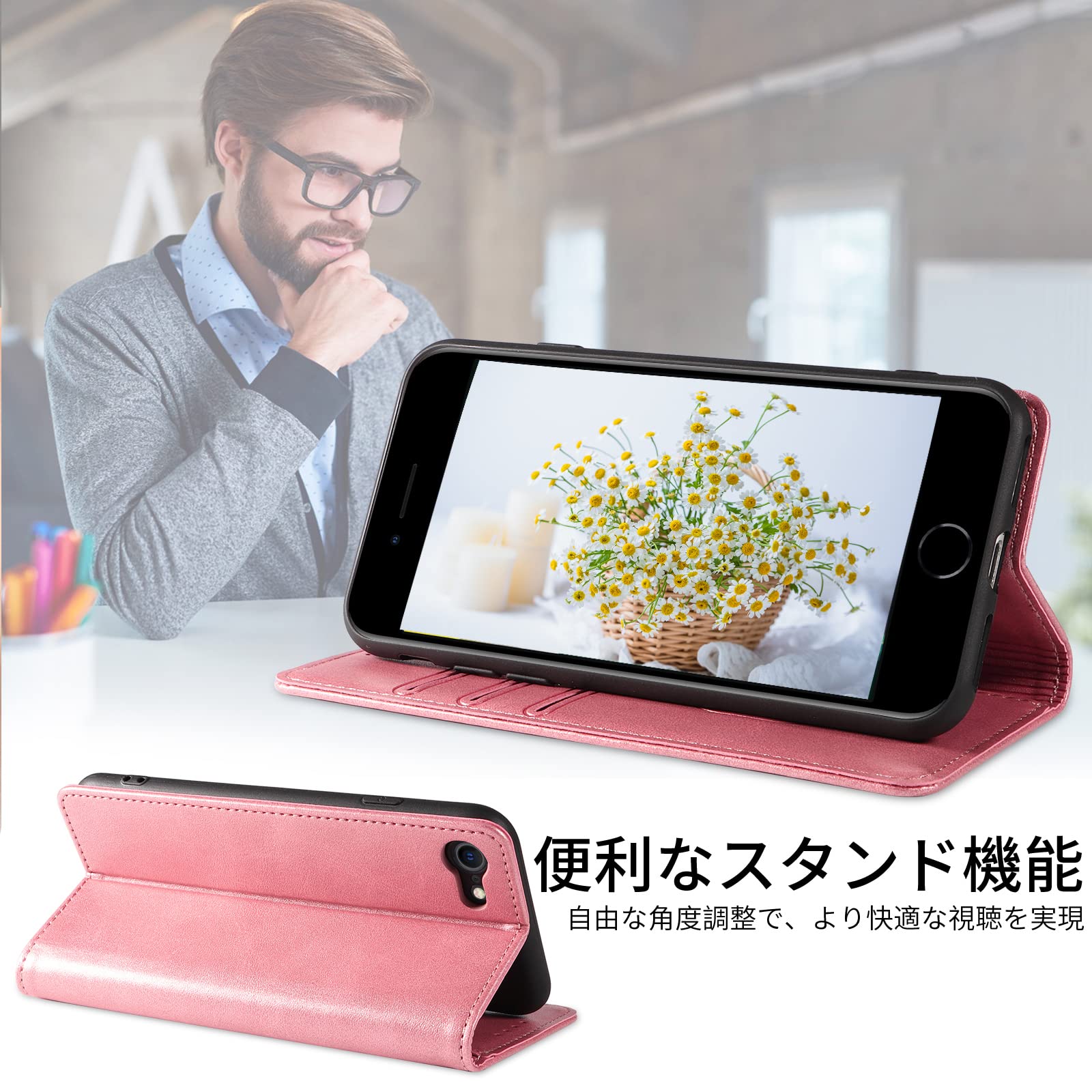 iPhone SE2 ケース 第2世代 第3世代 iphone8/7 ケース 手帳型 スマホケース 携帯カバー PUレザー カード収納ケース マグネット式 スタンド機能アイフォンse 4.7インチ対応 360度保護 PinLiSheng (バラゴールド iPhone SE2 iPhone SE3 iPhone8 iPhone7)