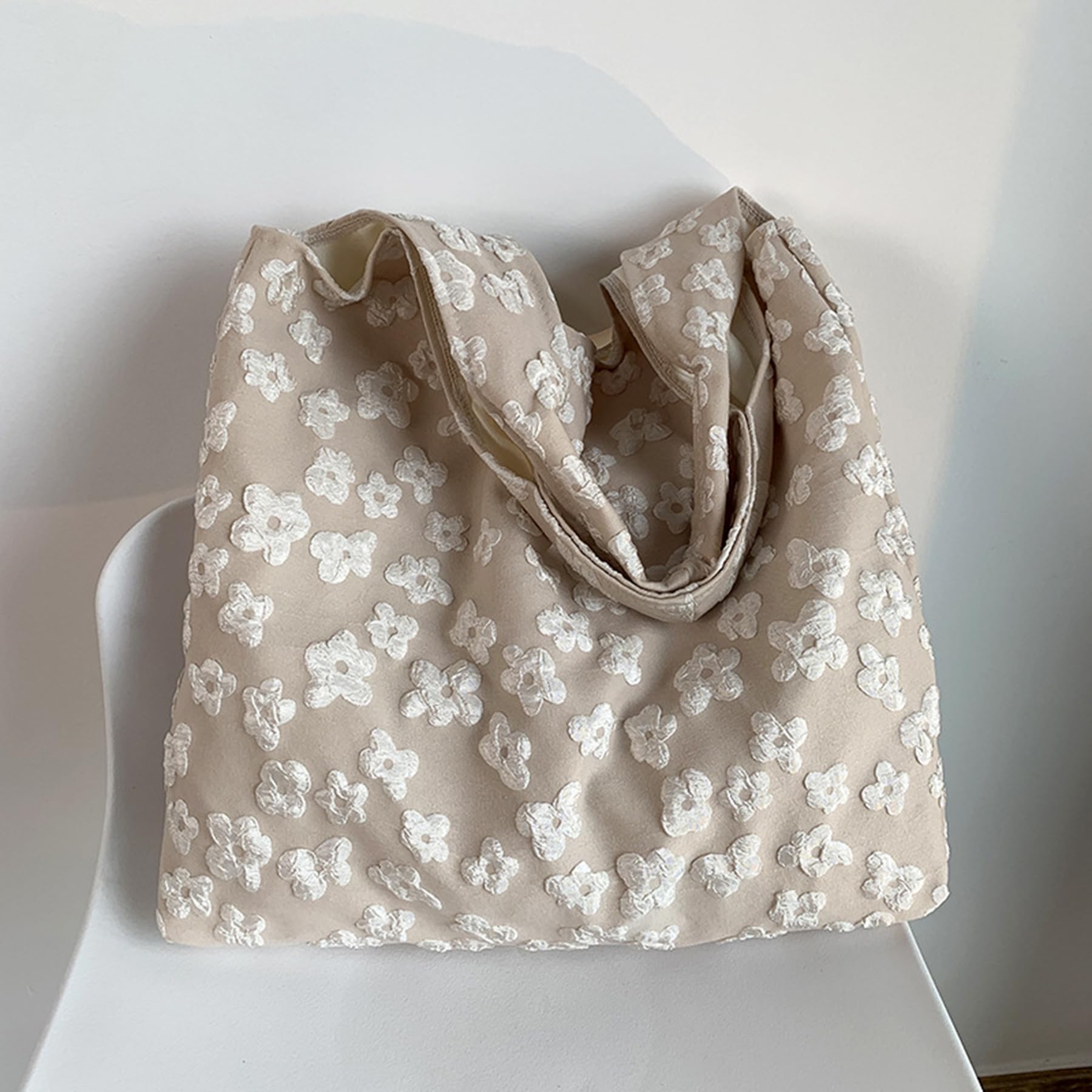 シンプルなデザインに立体の花柄が合わさり、可愛らしく使いやすいです。手持ち/肩掛けの2wayで利用して頂けます。
