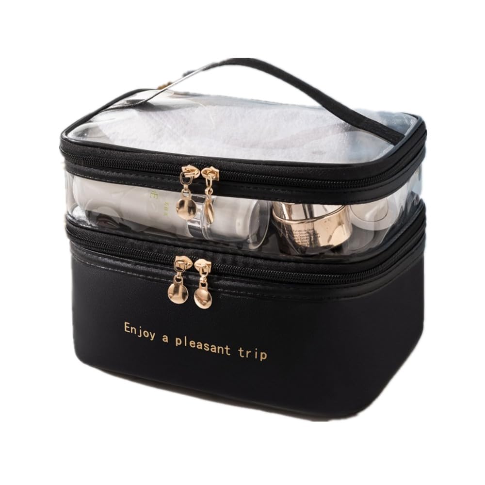 FLORPERRY メイクボックス 化粧ポーチ メイクポーチ コスメティックバッグ 大容量 コスメポーチ 化粧品入れ 収納ポーチ 化粧バッグ 旅行ポーチ トイレタリーバッグ トラベルポーチ ブラック-二層