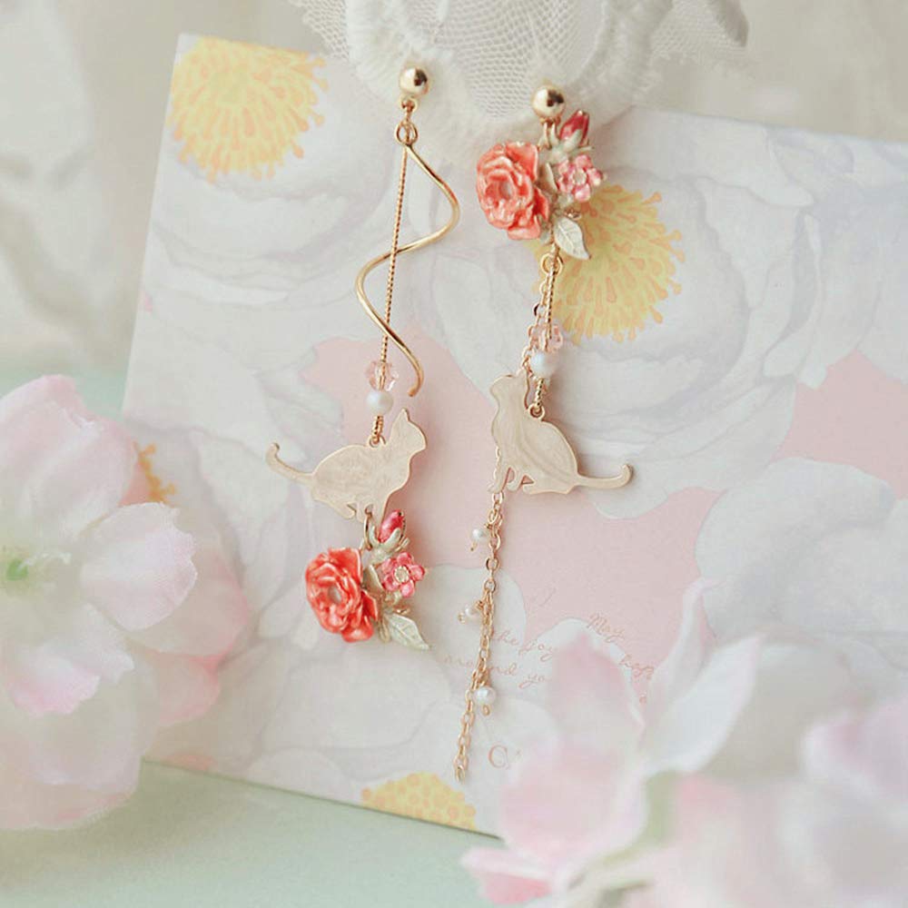 【商品の特徴】きれいで立体感があるの薔薇、可愛い猫、艶やかな琺瑯着色、絶妙な組み合わせ、大人可愛いと華麗さを失わない揺れるレーディス花ピアスです。揺れる度に高級感を湧き立たせ、お顔周りをぐっと華やかに、存在感しっかり!ロングピアスの小顔効果も抜群!