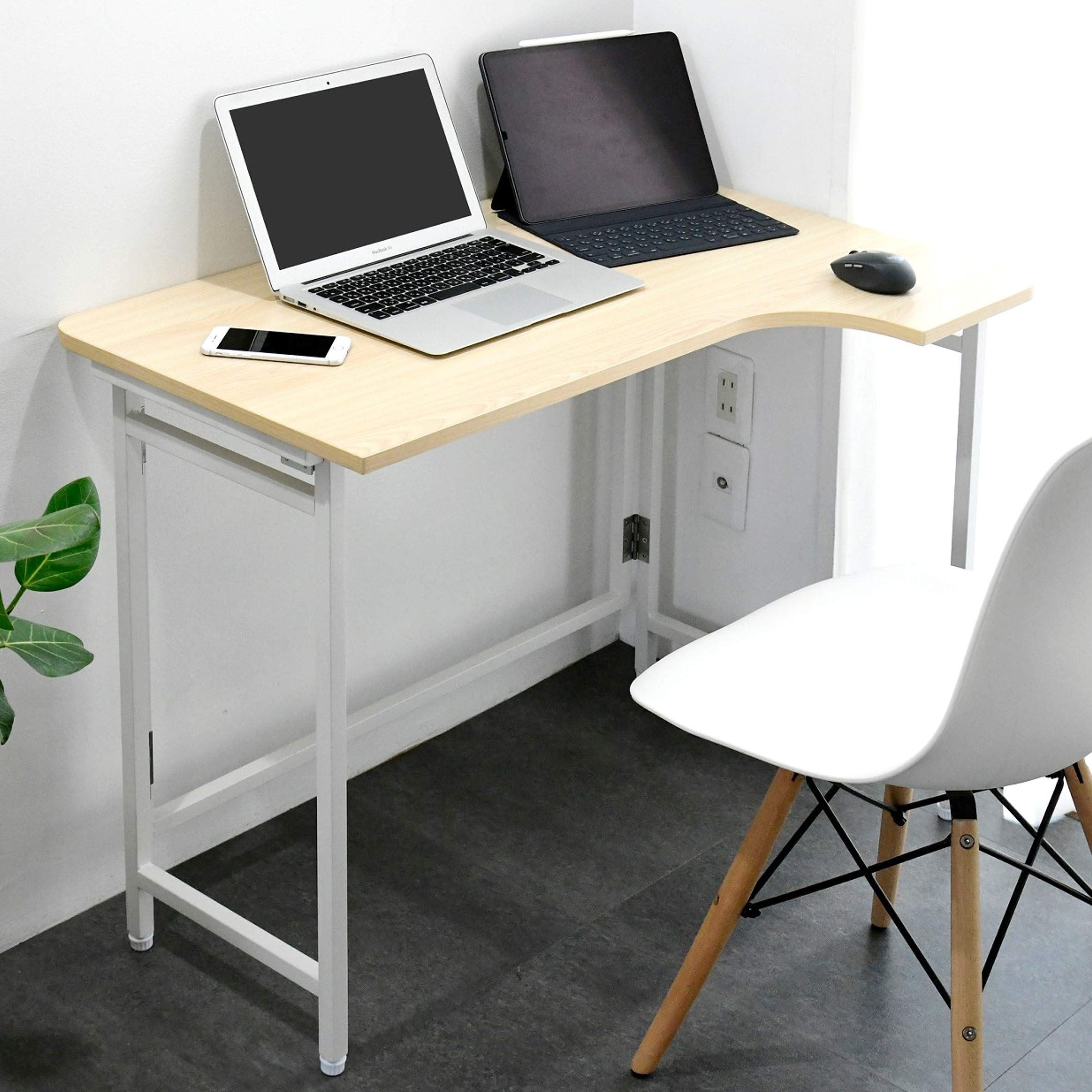山善(YAMAZEN) デスク (L字デスク) 折りたたみ 傷・汚れ・水分・熱に強い天板 なめらかな表面 角が丸い アジャスター付き 幅90×奥行60×高さ70.5cm 完成品 ウッドナチュラル/ホワイト RPSTC9060HWNWH2 テレワーク