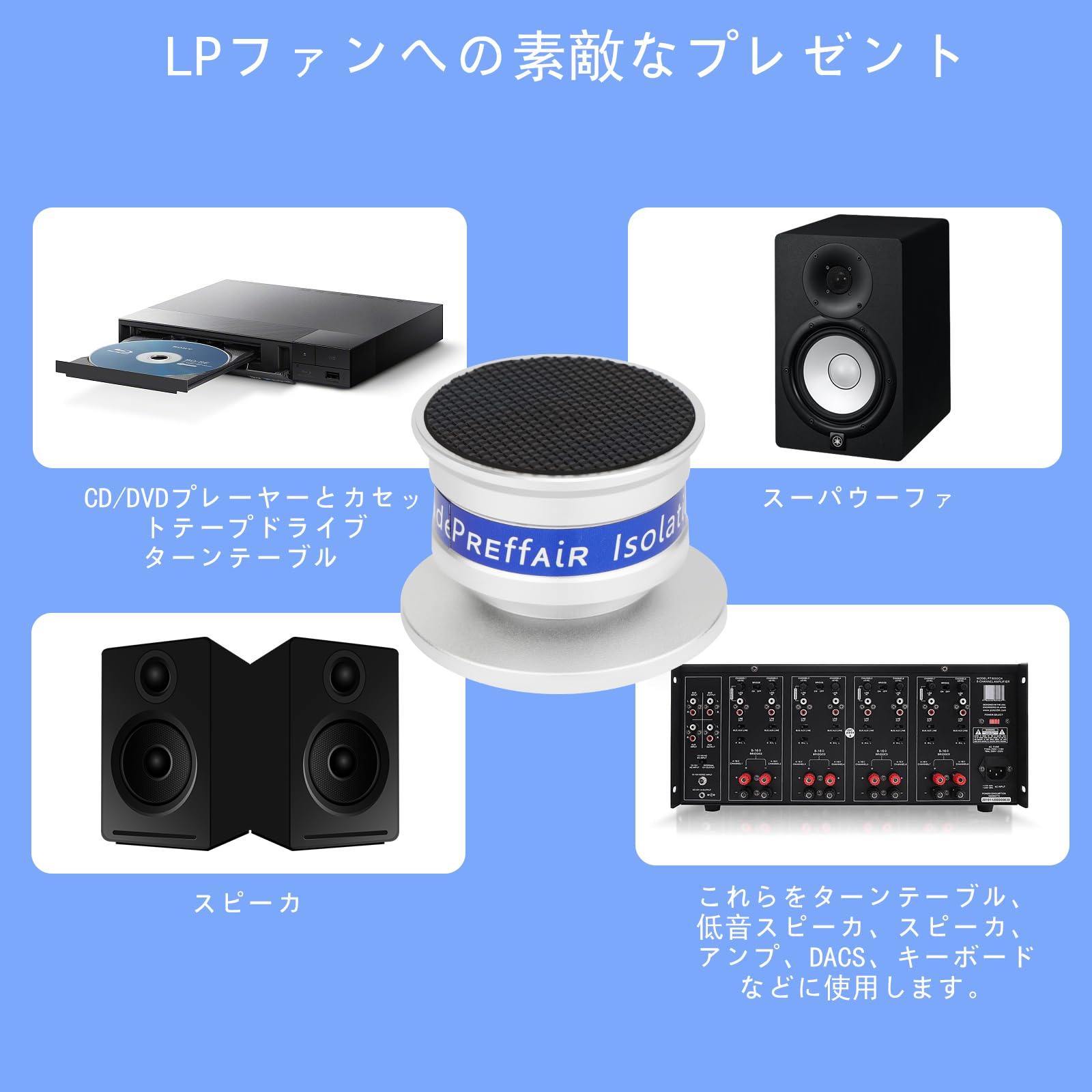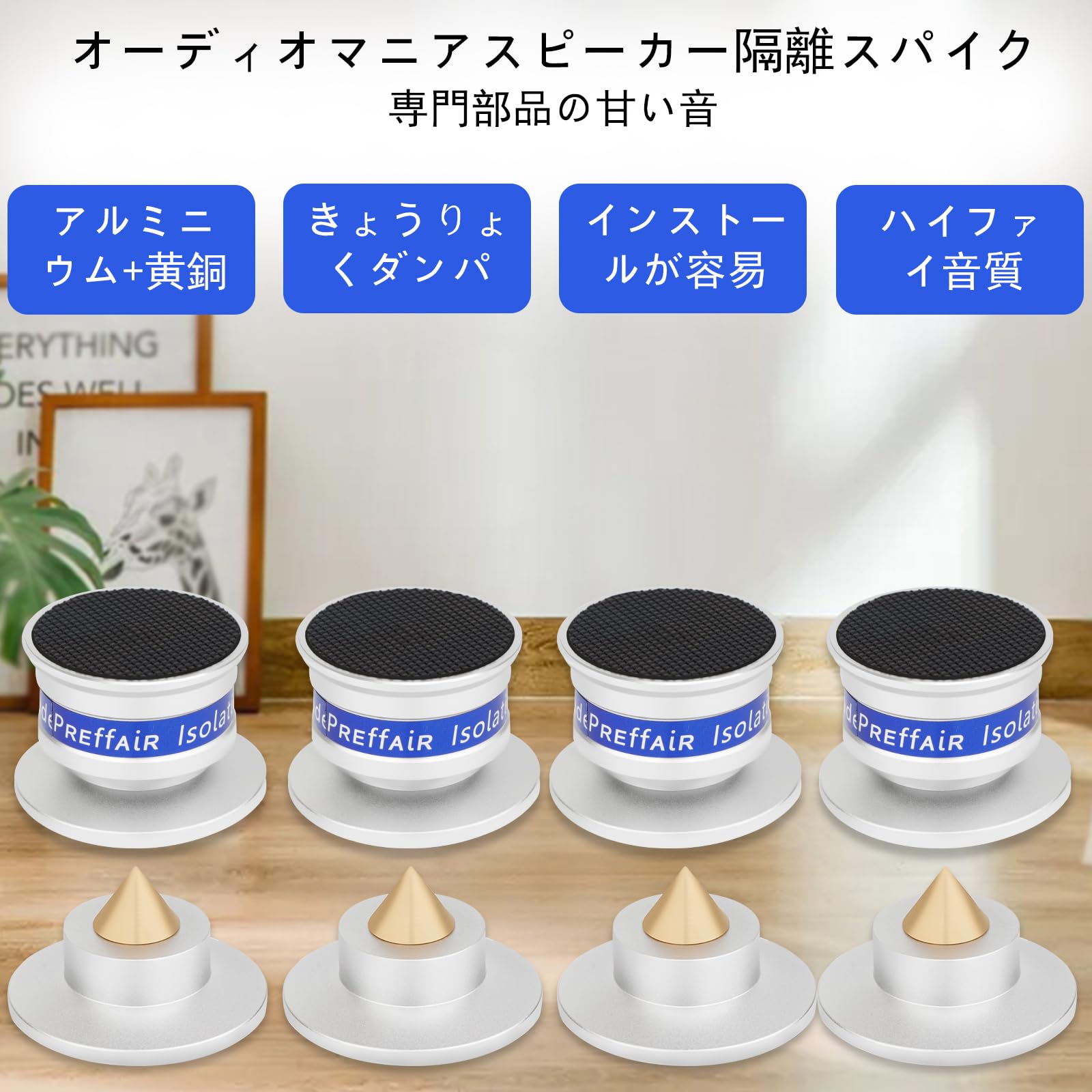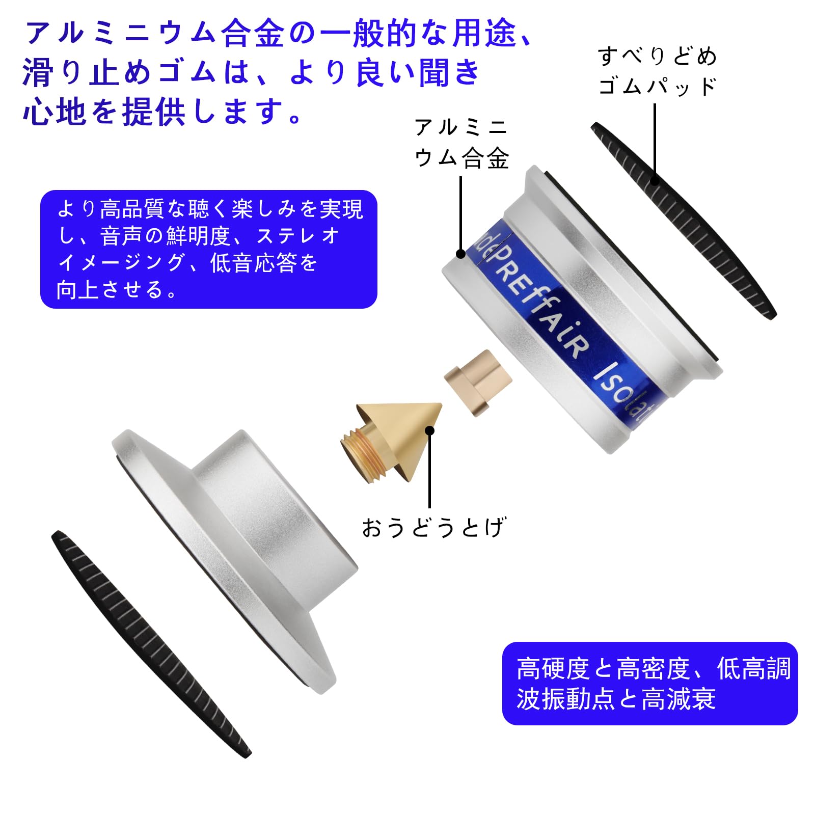 ❖ 高忠実ターンテーブル分離脚吸振器は高減衰特性を有し、低量感を維持し、高周波線感と簡単感を高めることができ、スピーカ、増幅器、計器、ターンテーブル、CD/DVDプレーヤー、録音機、DACなどの理想的な選択である。