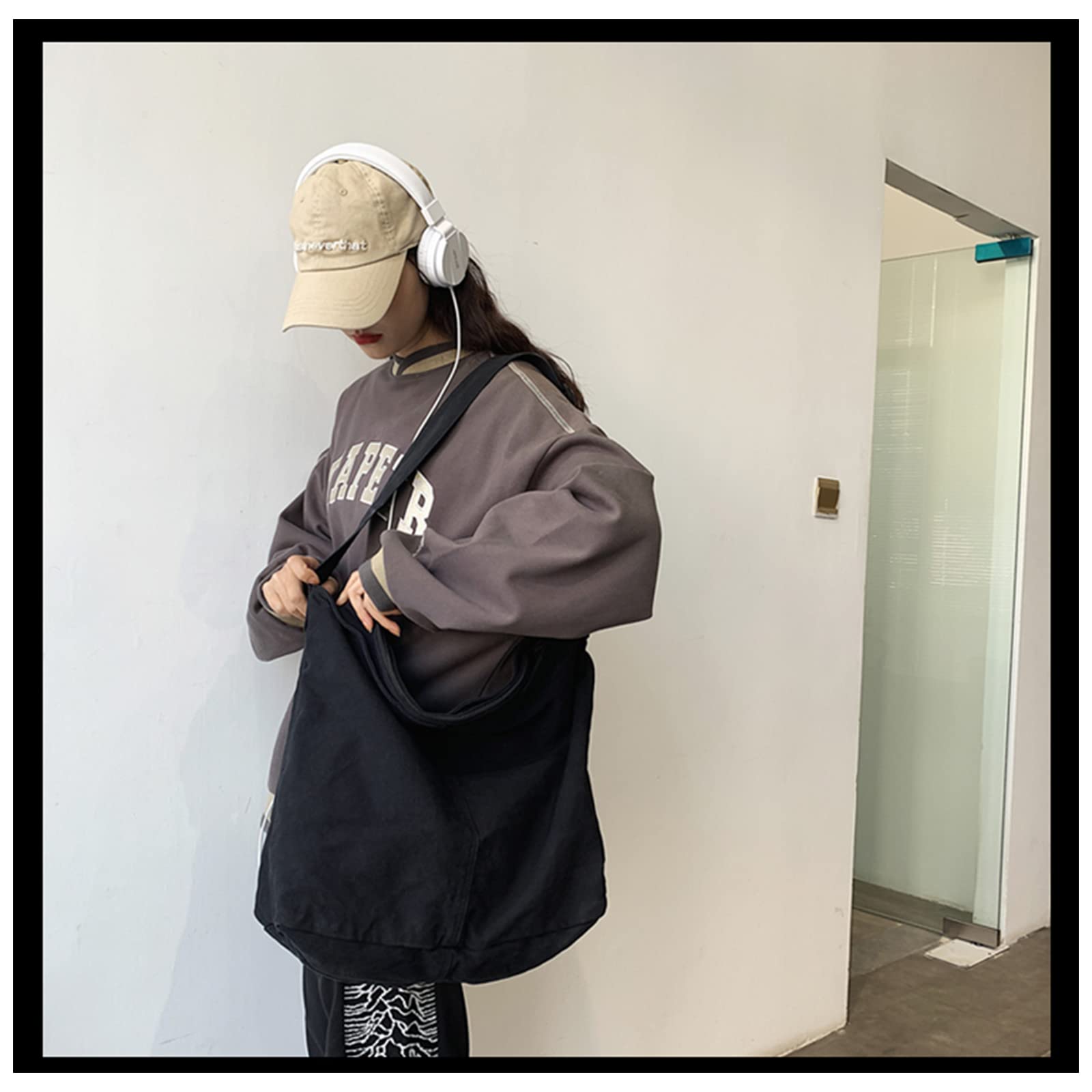 [Wowcarbazole] トートバック キャンバス 大容量 ショルダーバッグ 無地 肩掛け バッグ キャンバストートバッグ レディース メンズ ファスナー付き 一泊 旅行バック 通学