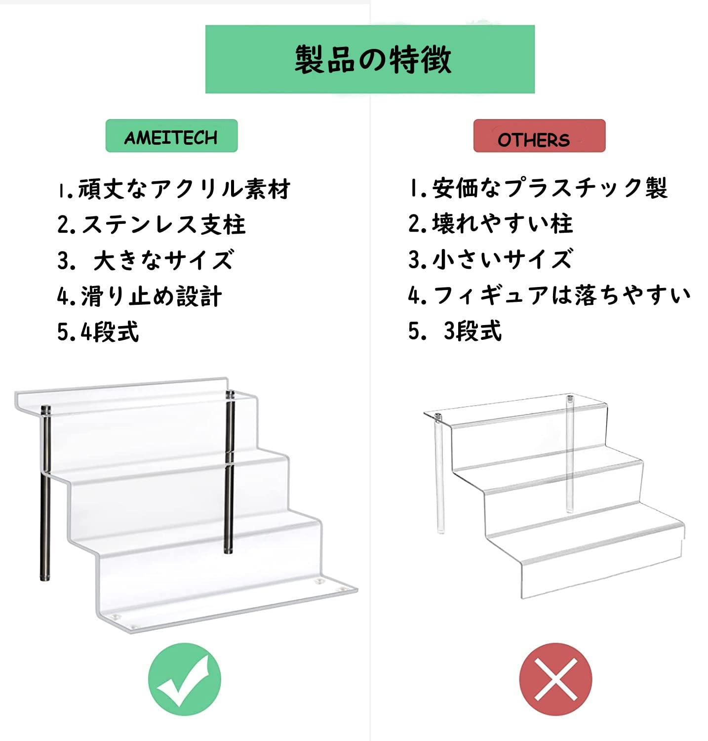AMEITECH フィギュアスタンド ディスプレイ 4段 ひな壇 アクリル アクリルスタンド アクリルステージ 台座 棚 スタンド ミニ 階段台座アクリル (22.8*21*15.2cm )