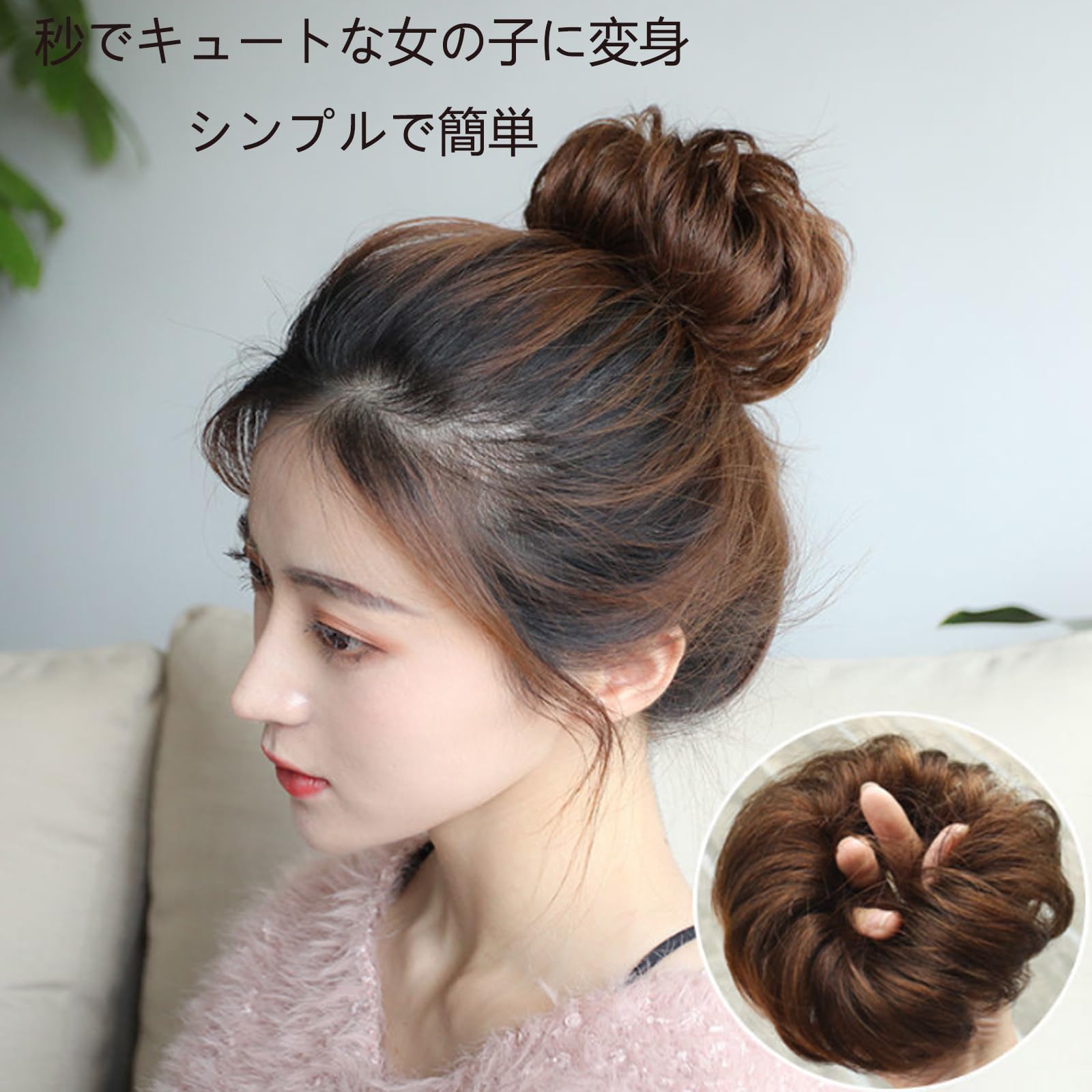 HAPVITAL お団子 ポイントウィ ウィッグ 和装 シニヨン 部分 ウィッグ つけ毛 髪飾り ボリュームアップ 簡単 自然 感 ピッタリな髪型 おしゃれ 人気 レディース (きつね色 カーリー)