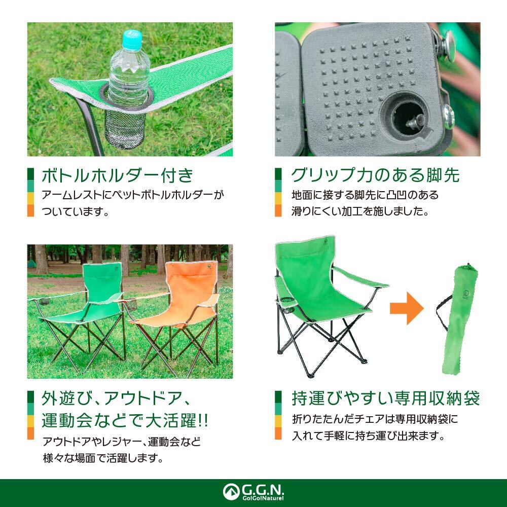 ジージーエヌ アウトドア チェア 折りたたみ式 収束式 軽量 コンパクト ドリンクホルダー付 組み立て簡単 バーベキュー アウトドア スポーツ観戦 グリーン
