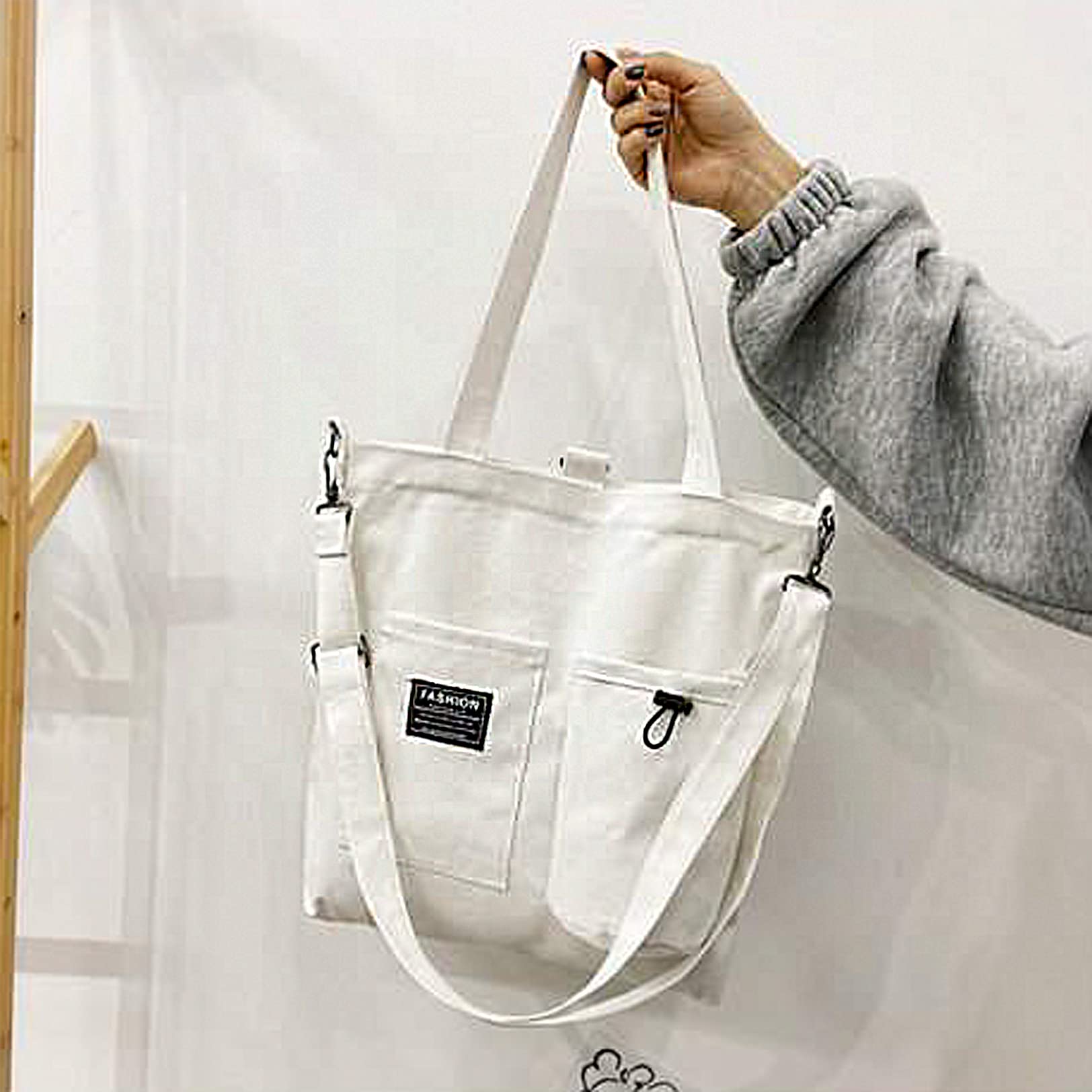 「大容量」このキャンバスバッグのサイズは35*35*6cm。 長財布、スマホ、エコバッグ、ウォーターボトル、鍵を入れて、iPad、書籍、A 4雑誌、B 5傘、ペットボトル、化粧品サッと出かけられるサイズ適当の大容量!