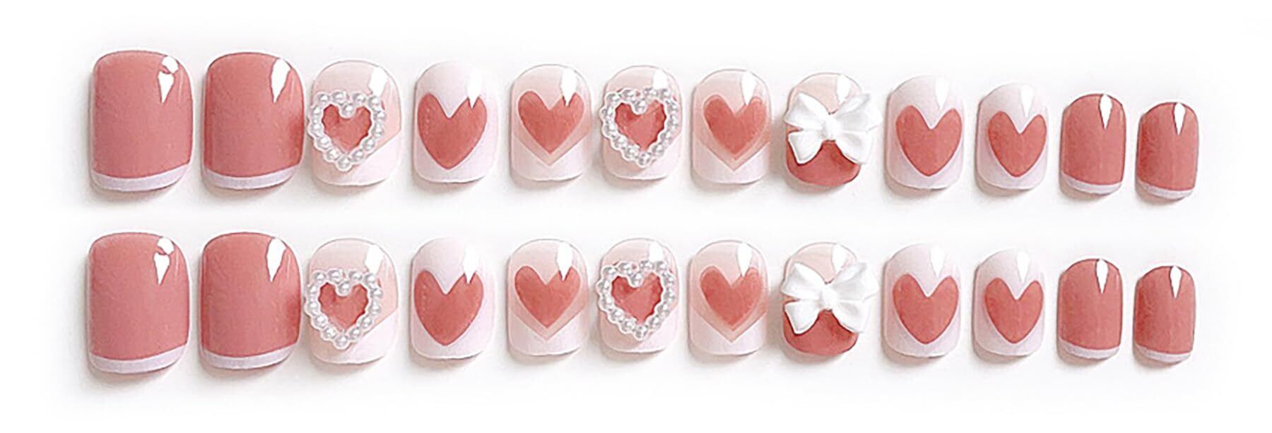 ネイルチップ 人気つけ爪 24枚入 光沢 3Dネイルチップ 手作りネイルチップ 結婚式ネイルチップ 大人可愛い 人工ネイル ネイルチップ ロング ショート キラキラ 透明 花嫁ネイルチップ 入学式 卒業式 二次会 撮影 デート イベント ネイル用品 両面テープ付き (タイプ14)