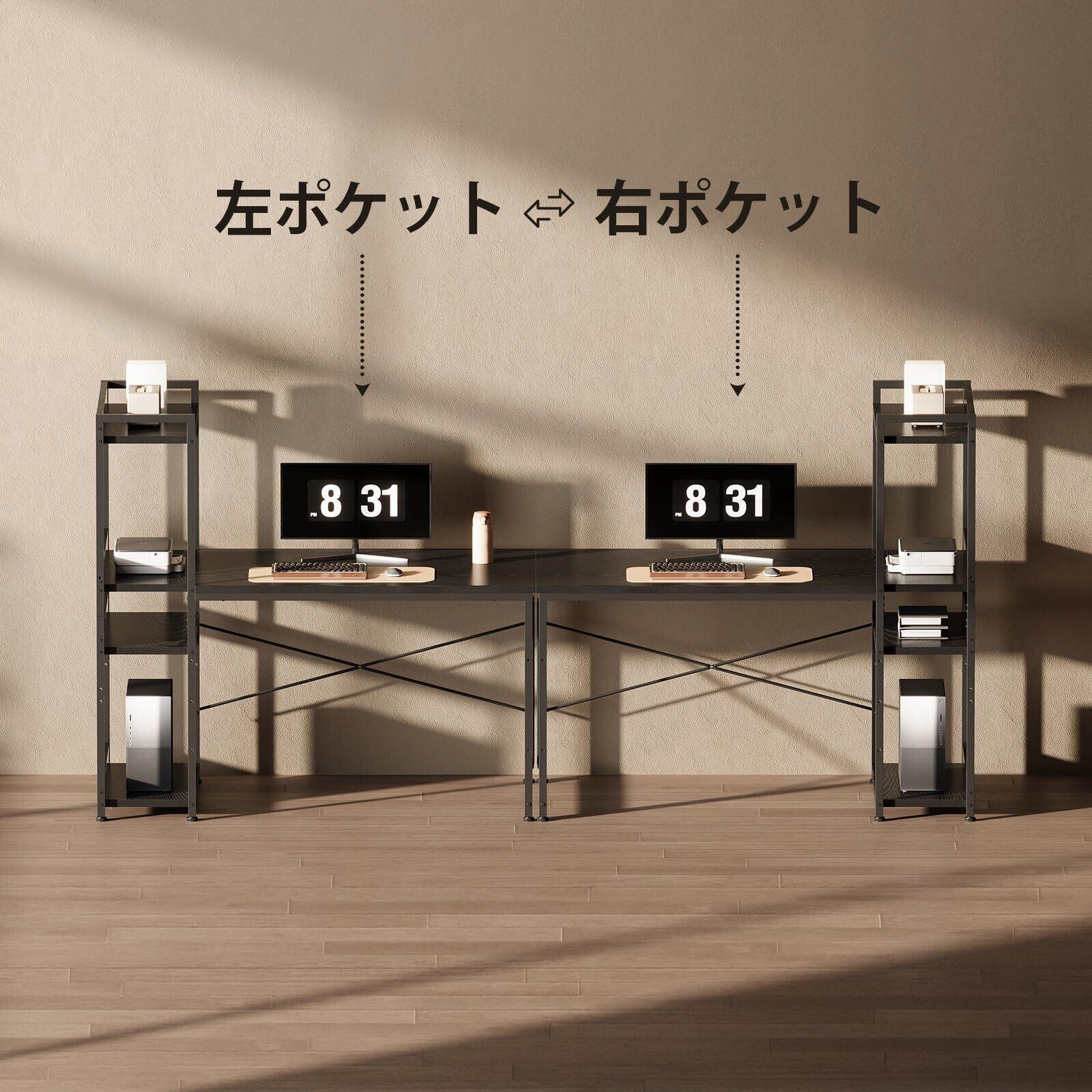 パソコンデスク 机 pcデスク 右棚左棚 幅100cm ラック付きデスク 勉強机 ワークデスク 本棚付き オフィスデスク 黑い