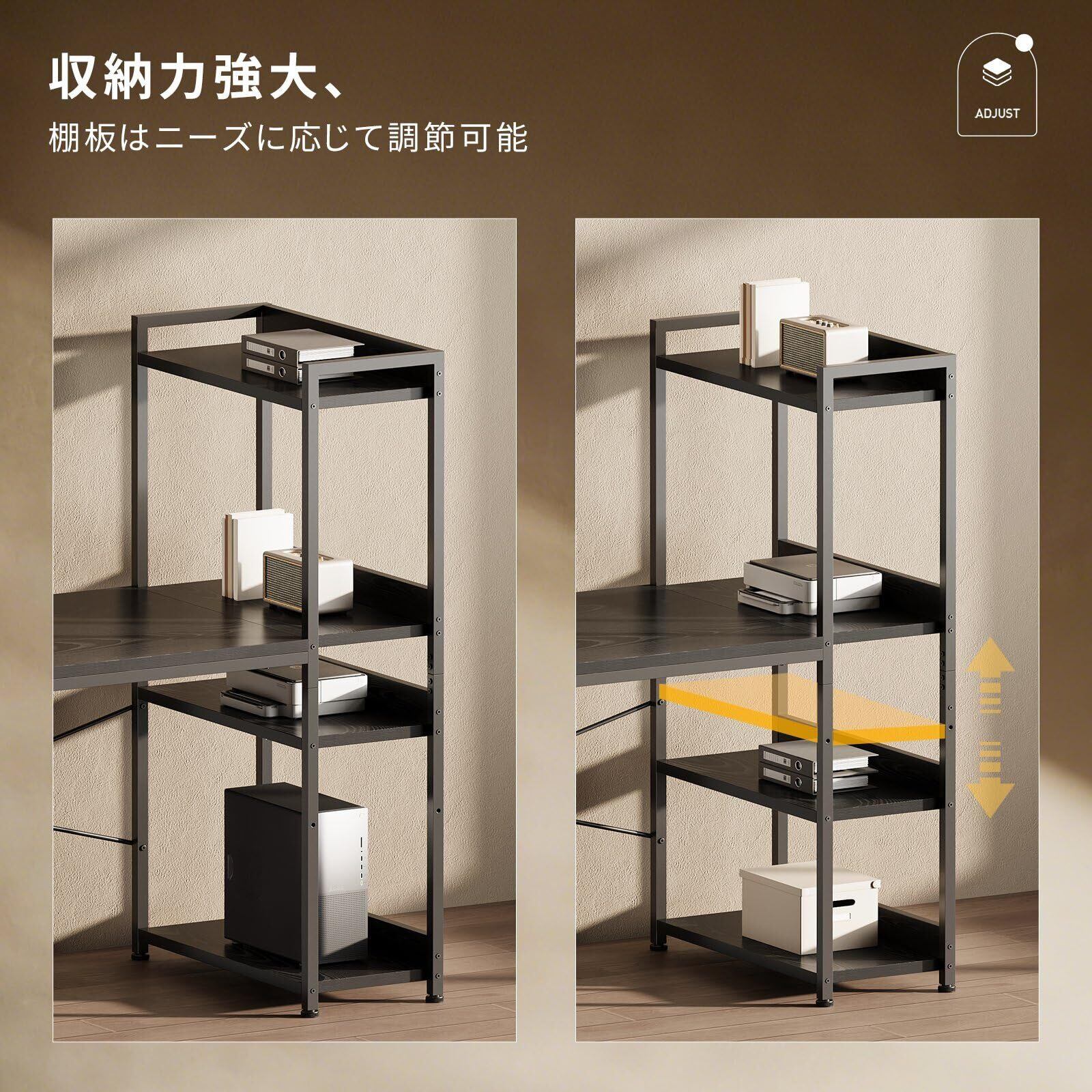 大容量棚付きで収納力 UP:棚付きデスクの設計で、機の側面に大容量 4 階層の棚を備え。棚側面には挡板があり、小物や書籍などを整理しやすく、落下を防ぎます