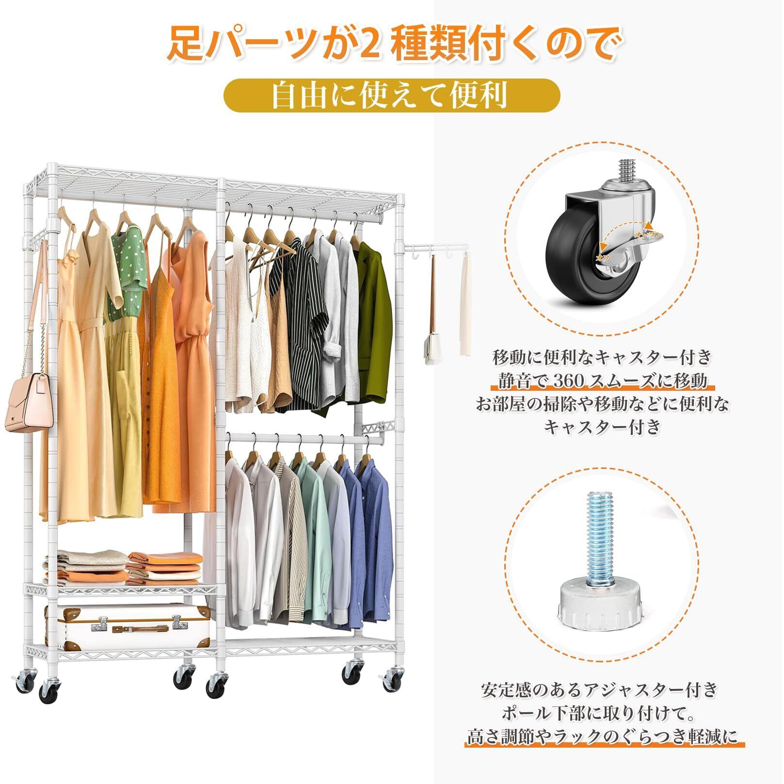 AZAKBLハンガーラック 頑丈 洋服ラック 大容量 キャスター付き クローゼット ワードローブ ハンガーラック2段 洋服掛け 防サビ加工 組み立て簡単 高さ調節 省スペース おしゃれ ハンガーかけ コートハンガー 洋服収納 (ホワイト, 幅97×奥行40×高さ191cm)