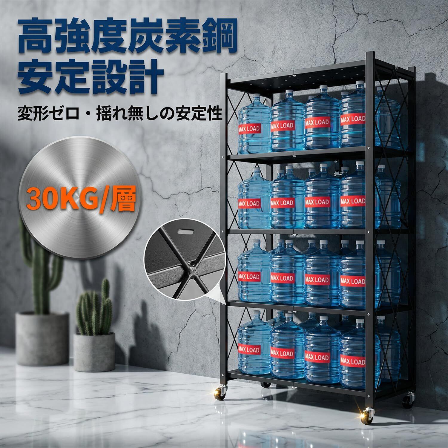 【️組立不要×即時使用】収納ラック 組み立て不要が最大の特徴!工具一本も必要なく、箱から取り出して広げるだけで折りたたみラックとして使用可能!折りたたみスチールラック主婦でも1分以内にセット完了、面倒な組立手順で時間を浪費することなく、すぐに収納作業に取り掛かれます。