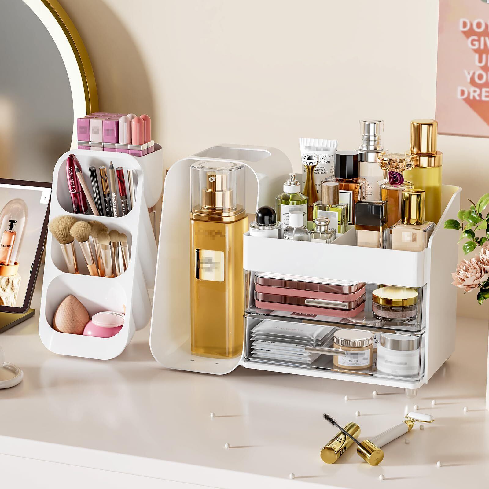 JOYZAN メイクボックス 大容量 コスメ収納 化粧品 収納 ペン立て メイク収納 コスメボックス 化粧品収納ボックス 多機能 卓上収納 引き出し小物入れ おしゃれ 強い耐久性 整理簡単 ホワイト