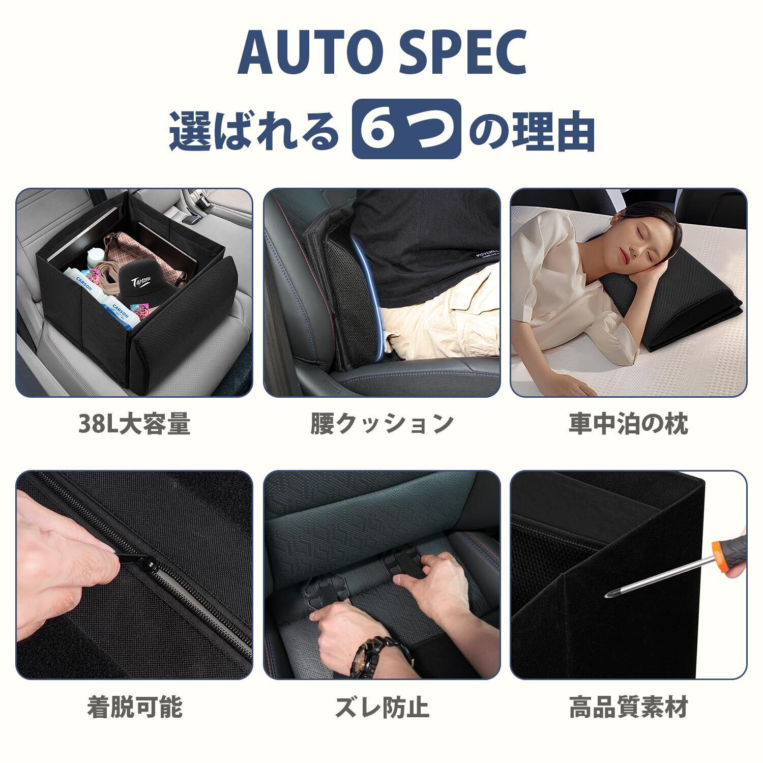 Auto Spec 車 収納ボックス 3WAY ボックスクッション シートボックス 腰 クッション 簡単着脱 38L大容量 荷物の転落防止 折りたためる収納ボックス 車中泊の枕 座席 荷物置き ランバーサポート 腰パッド 荷物入れ 助手席 収納BOX 多車種対応 フリーサイズ メーカー直営 (ブラック)
