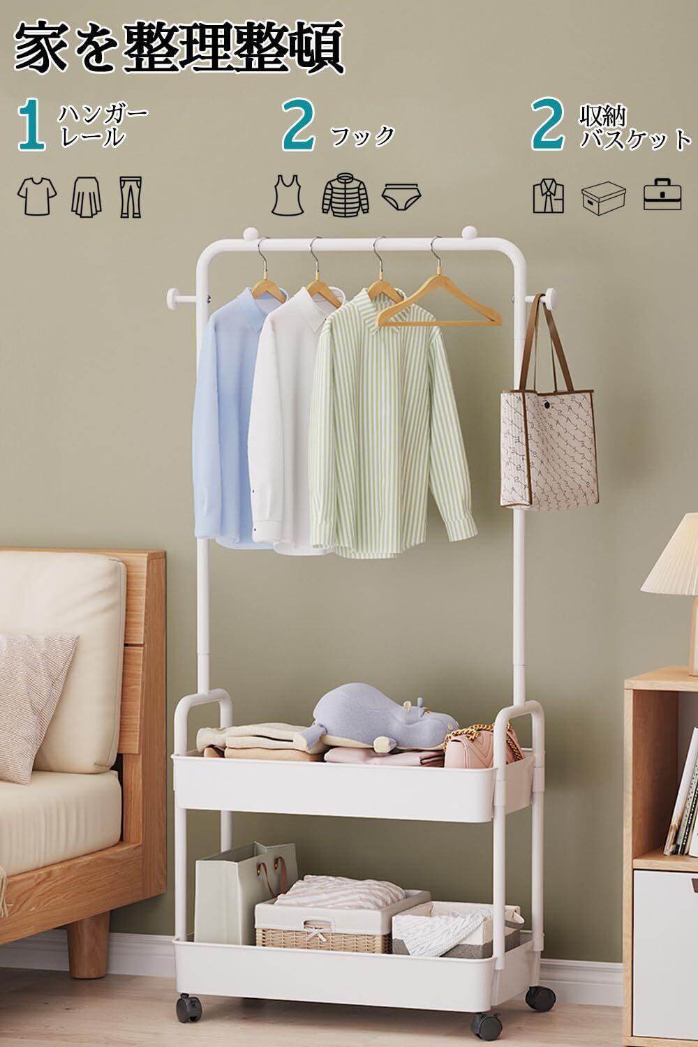 スリム ハンガーラック 収納付き おしゃれ 洋服ラック キャスター付き 挂衣架立式 玄関 服収納ハンガー 多機能 clothes rack 子供 コート掛け 服掛け 棚付き コンパクト 衣帽架 かばんかけ スタンド (ベージュ)