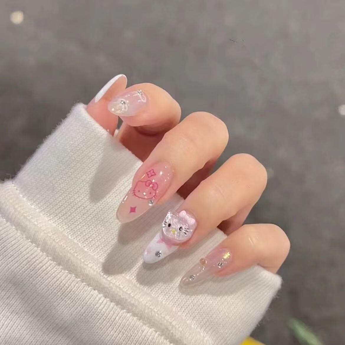 デザイン性:ハローキティをモチーフにした立体デザインに、ラインストーンをあしらった華やかなネイルチップです。