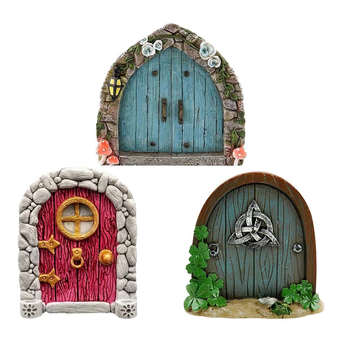 妖精のドア ミニチュア 3個入 ガーデニング 童話 装飾 可愛い 木製 彫刻 芝生 庭 屋外装飾 風景置物 飾り 雑貨 マイクロ風景装飾 おもしろ (C)