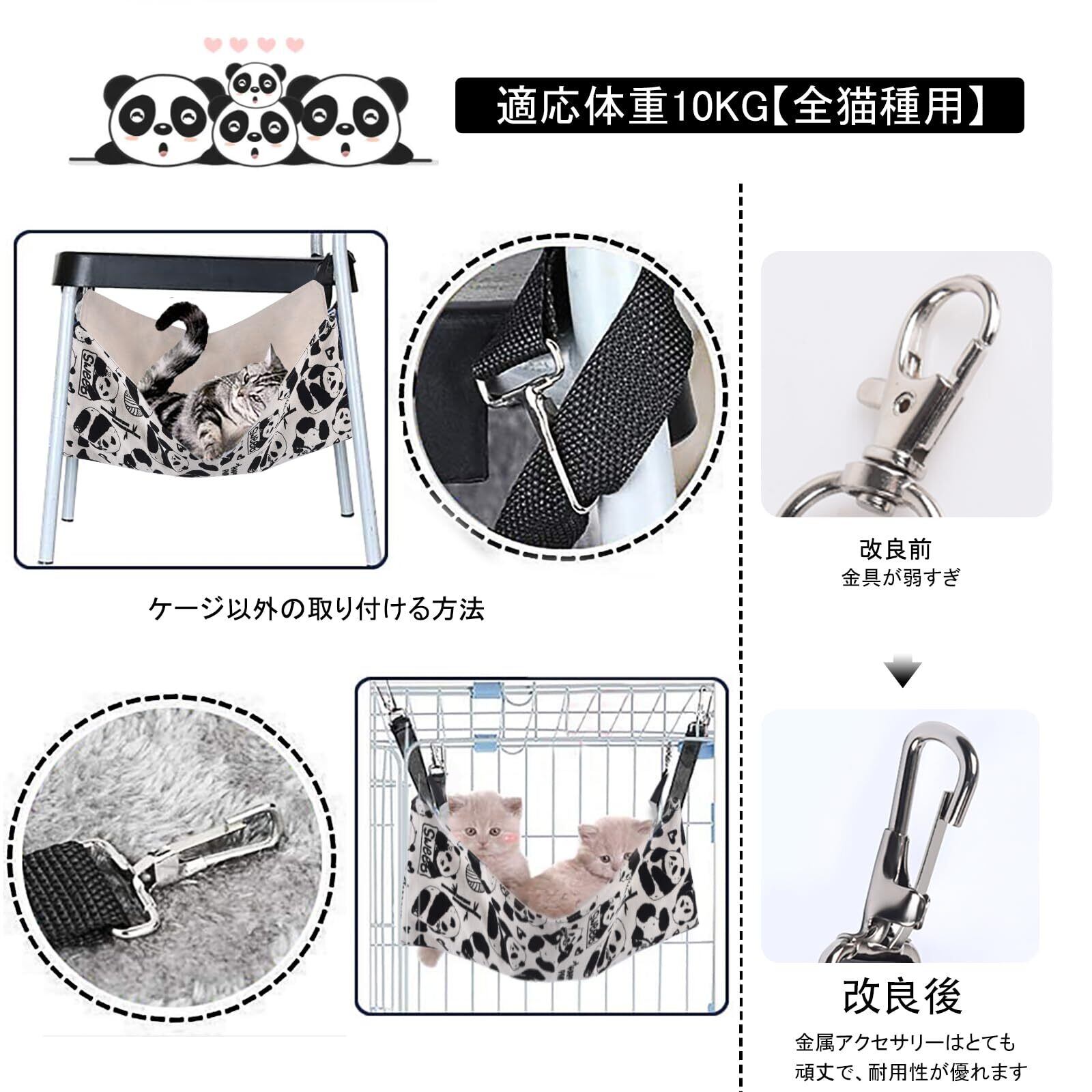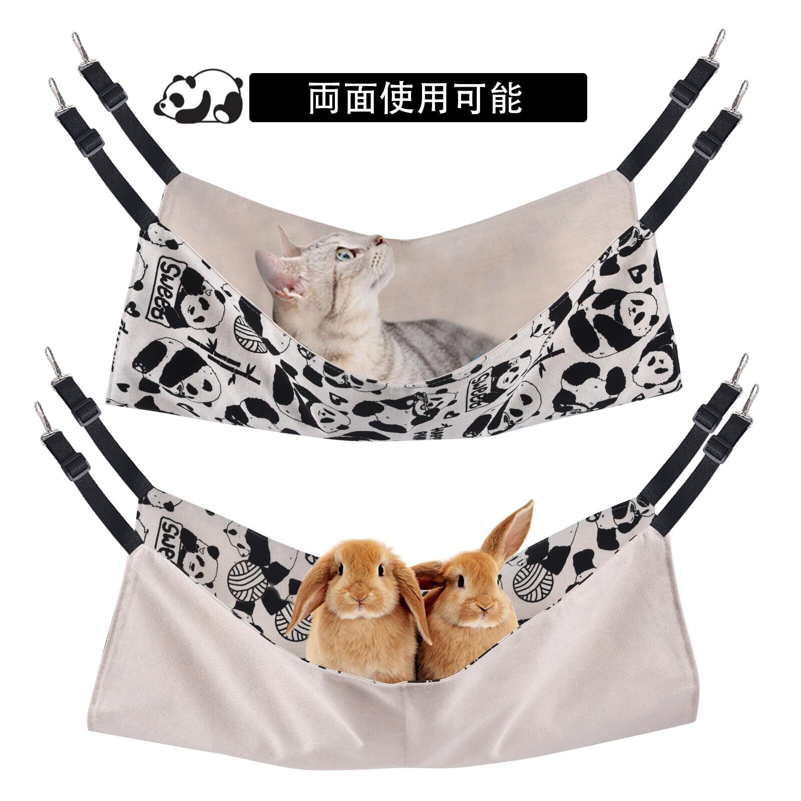 猫 ハンモック Blueekin キャットハンモック ヒモ調整可能 ペット ベッド ネコハンモック ケージ用 耐荷重10KG 大きい 56cm x 46cm 通気性 日向ぼっこ 遊び場 丸洗い 金具丈夫 夏冬両用(パンダ)