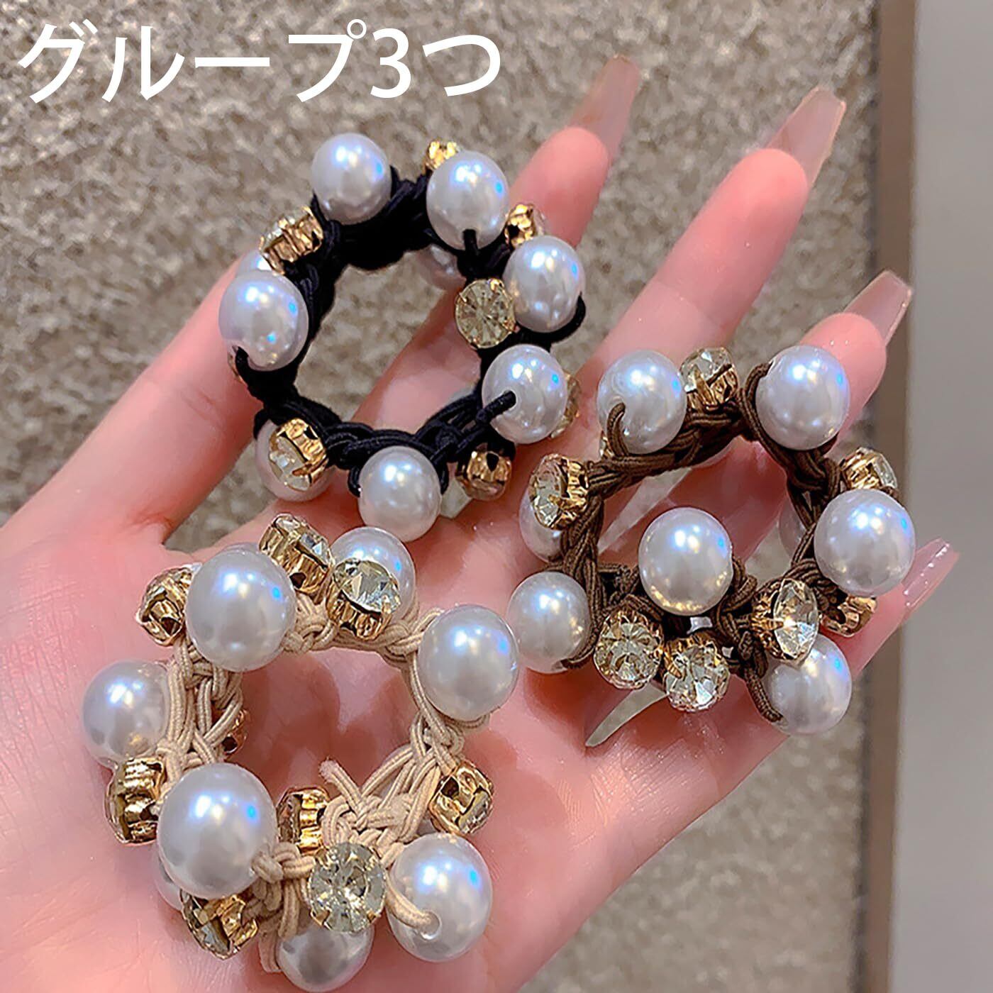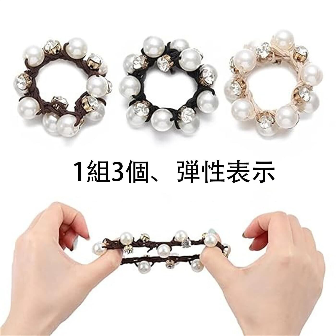 ヘアゴム髪ゴム 髪飾り おしゃれ ヘアゴム通勤 大人 シンプル トレンド オフィス 小物 っぽい シンプル トレンド おしゃれ かわいい ギフト (3本セットパールクリスタルデザインヘアアクセサリー)