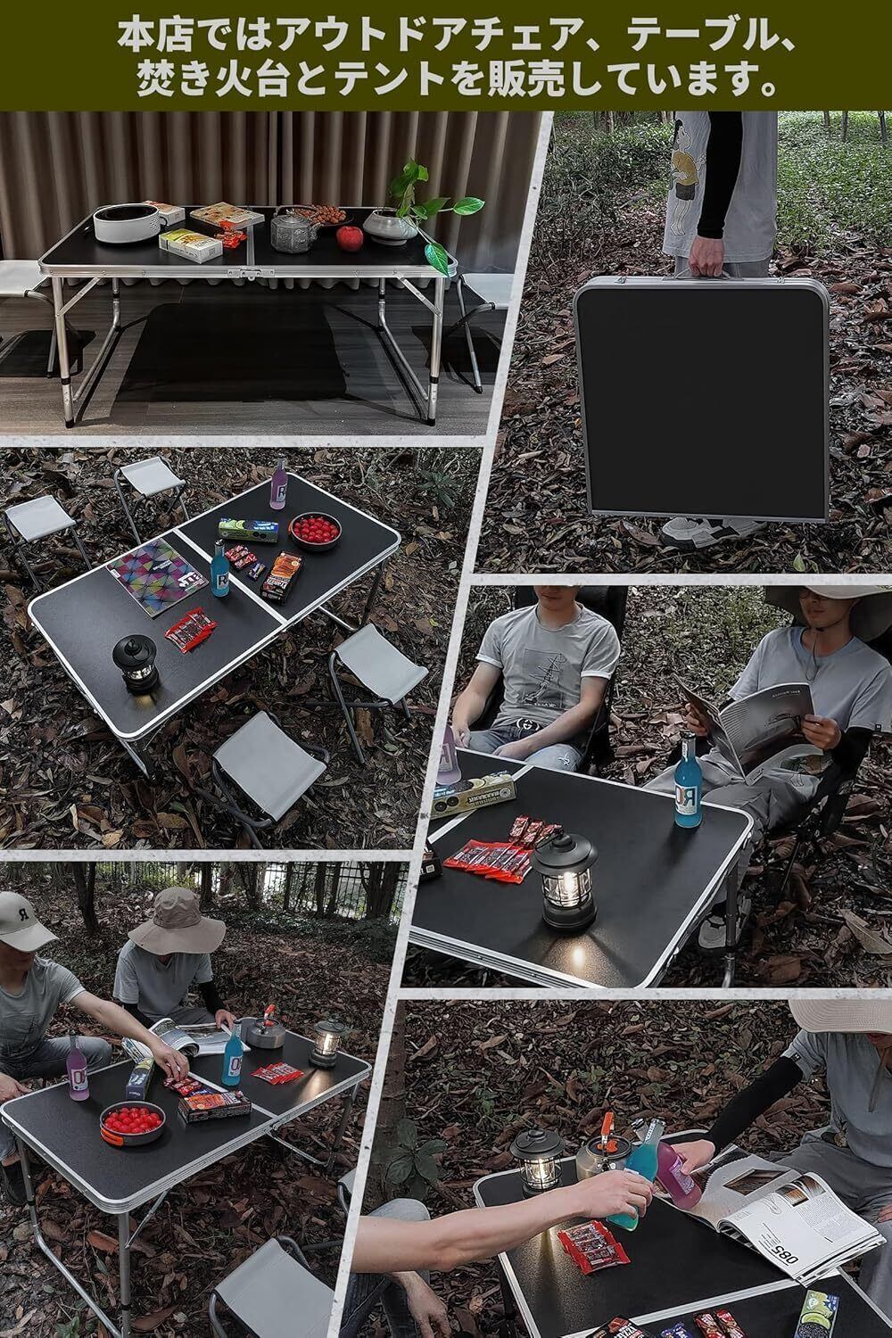 DesertFox キャンプテーブル アウトドア テーブル 折りたたみ 120cm 3段階高さ調整可能 単品/セットピクニック レジャー キャンプ用 折畳み コンパクト 収納 簡単組立006