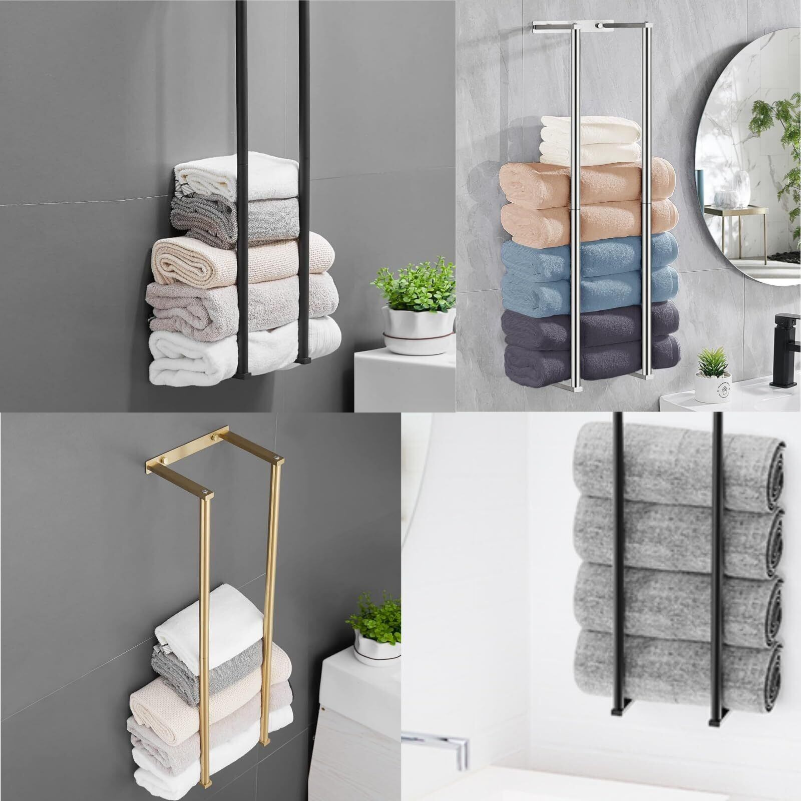 【幅広い用途】このタオル掛け 壁取り付けは省スペースで、バスルームのスペースを取りすぎず、タオル、バスタオル、ヨガタオルなどを収納できます。バスルーム、ホテル、サロン、ランドリールームなどの場所に適しています。