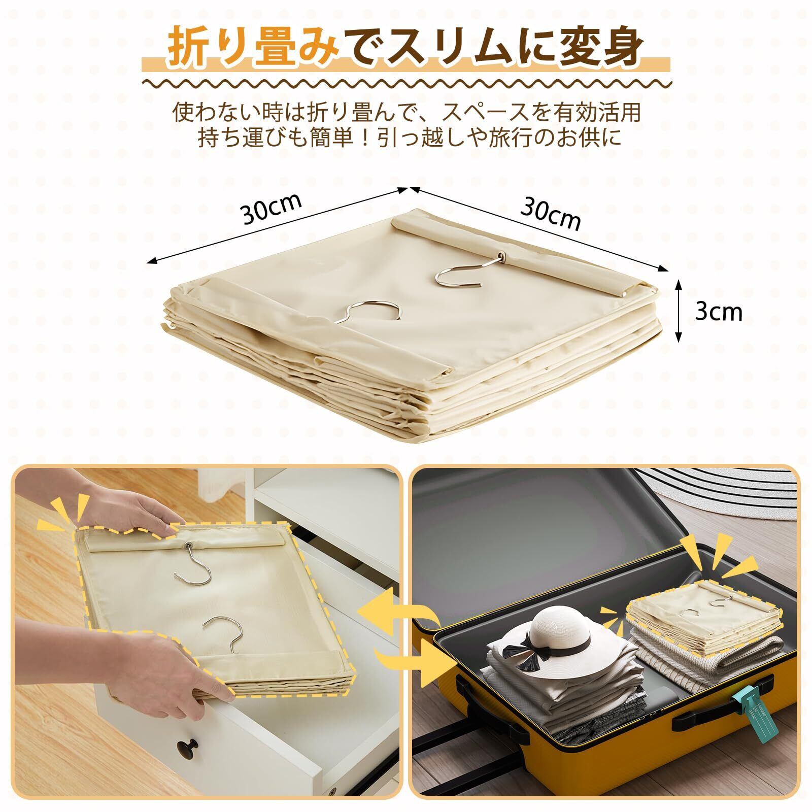 YOUDENOVA 吊り下げ収納 衣類ラック 折りたたみ クロゼット 吊るす収納 ぬいぐるみ、洋服、タオルに適用 ハンガーラック 省スペース ベージュ 4段 つり下げバッグ