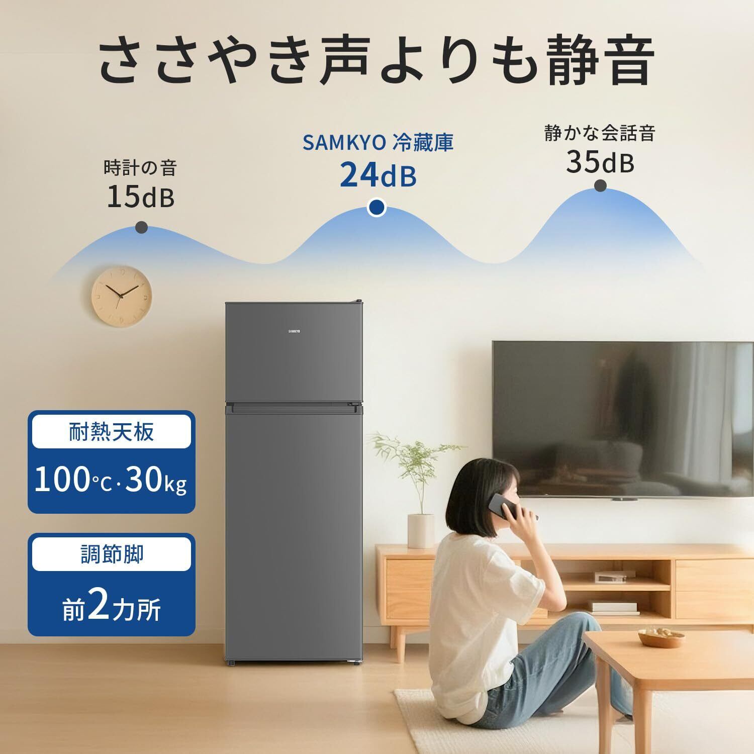 SAMKYO 冷蔵庫 一人暮らし 小型 スリム 大容量 120L 幅44cm 自炊派向け 省スペース 省エネ 2ドア 右開き 耐熱天板 グレー GU120S