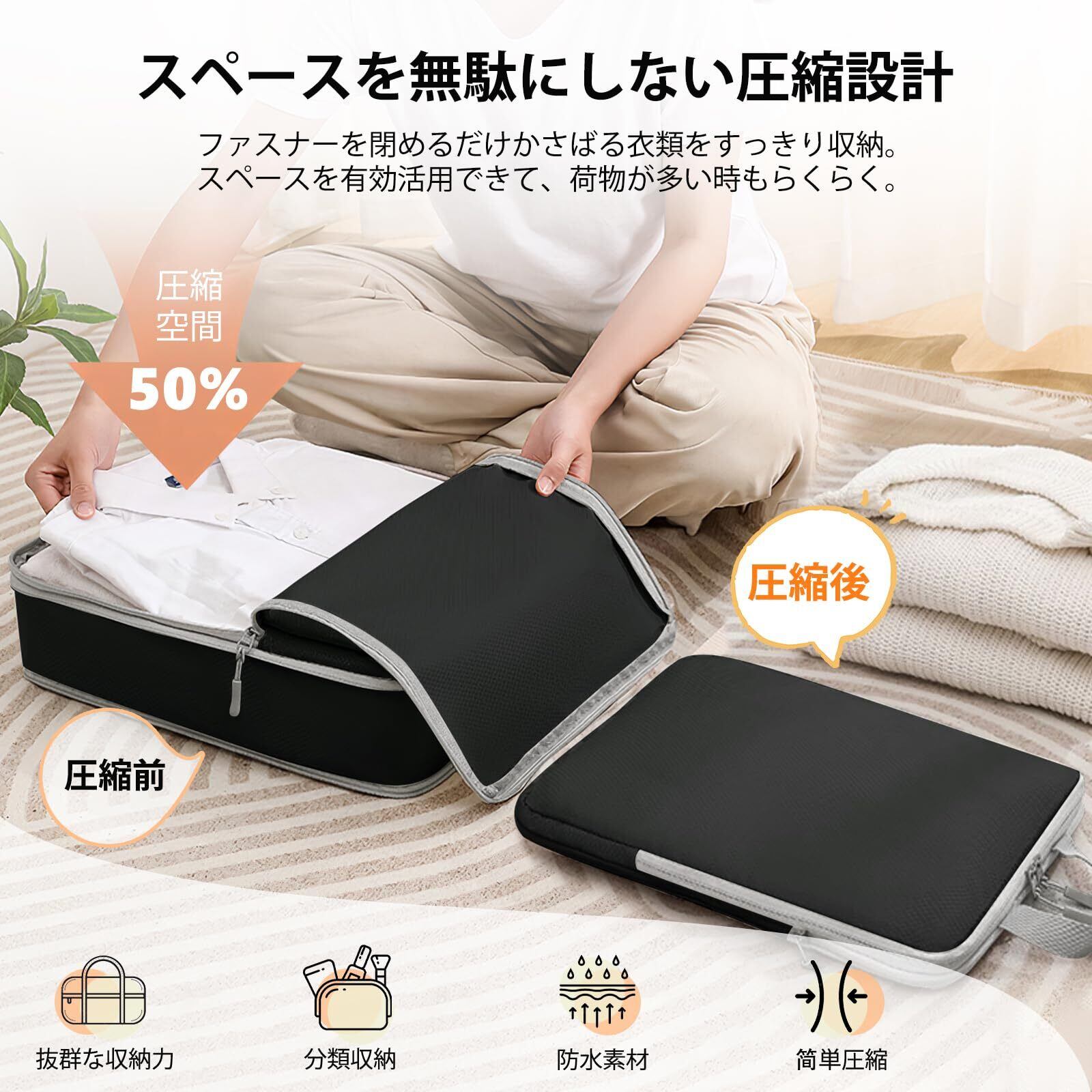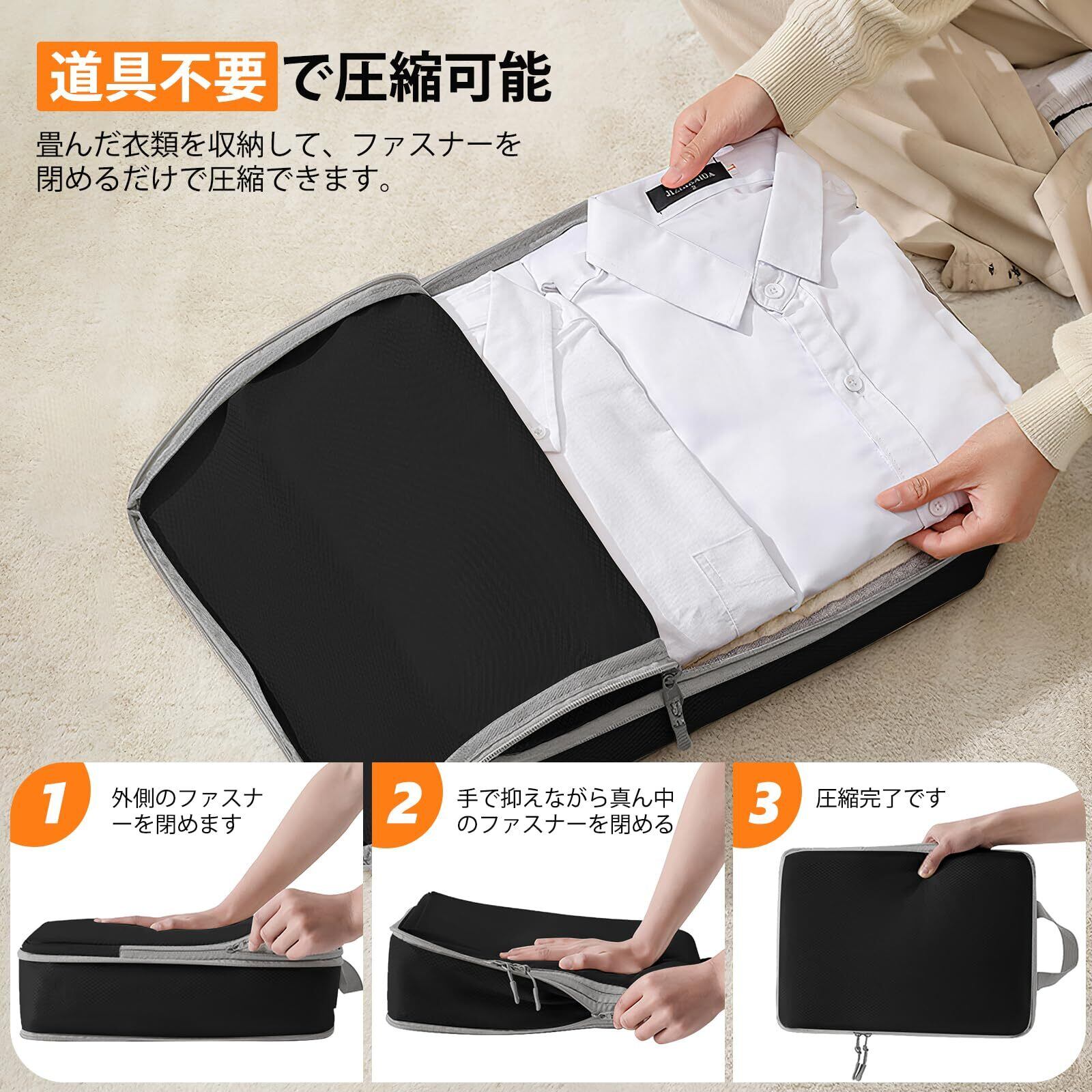 【簡単圧縮&50%スペース節約】圧縮用の吸引機などは不要で、ファスナーを閉めるだけで簡単に衣類を圧縮できるトラベルポーチです。2つの圧縮ジッパーを採用して、衣類スペースをより多く節約でき、約50%節約することができます!かさばる衣類や荷物を圧縮して、スーツケース内がすっきり整理整頓されます。