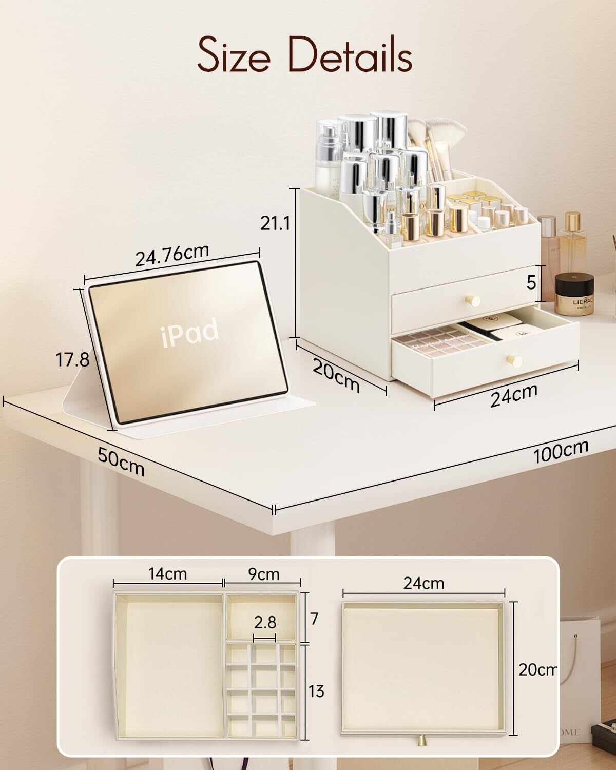 Vlando メイクボックス 大容量 化粧品 収納 コスメ収納 引き出し スキンケア製品、リップスティック、メイクブラシ 収納 コスメボックス 誕生日プレゼント女性(アイボリー)