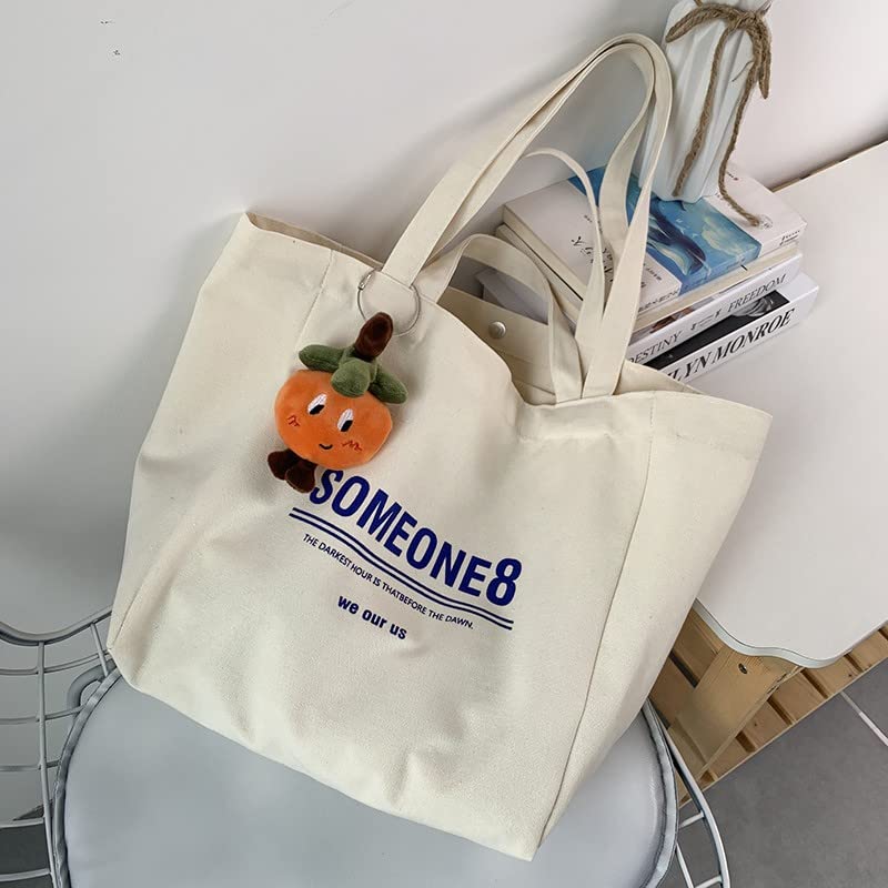 [ザボンチー] かわいいキャンバスバッグ トートバッグ 大容量 肩掛けバッグ 通学 出掛けバッグ ファスナー/ボタン付き
