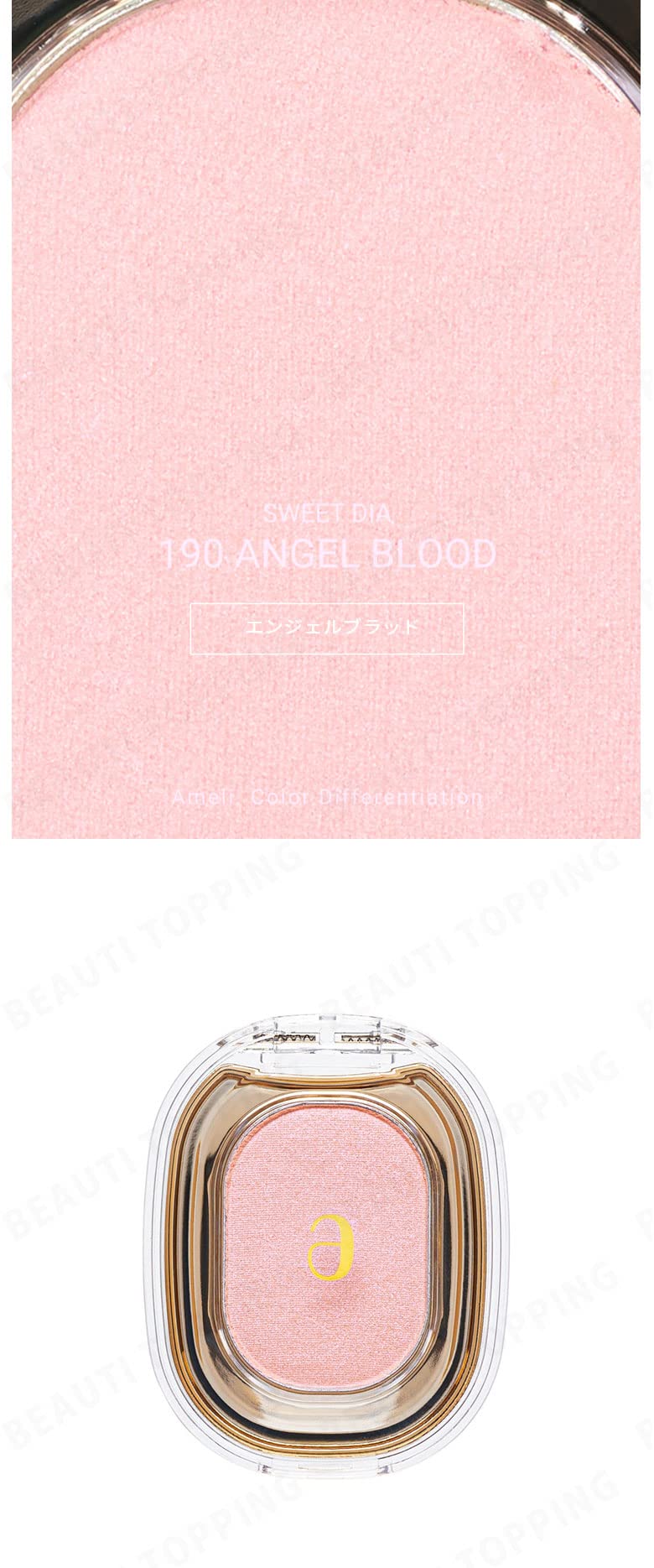 スウィート・ダイヤ・コレクションのエンジェル・ブラッドは、魅惑的なピンクのビームで、目元から頬まであらゆる角度を強調し、注目を集め、魔法のような輝きで欠点を隠します。