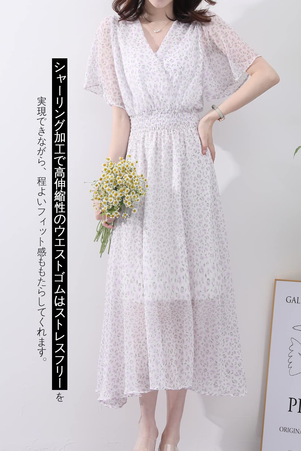爽やかなシフォン生地で作られていて、涼しげで上品見えが叶え、少し緩みあるシルエットは着やせ効果だけなく、歩くたびにゆれゆれ感あっておしゃれで洗練された女性らしい印象を譲り出してくれます。シャーリング加工で高伸縮性のウエストゴムはストレスフリーを実現できながら、程よいフィット感ももたらしてくれます。プライバシーにも配慮したしっかりの裏地が付いて、夏にご安心に着用頂けるマキシワンピースです。