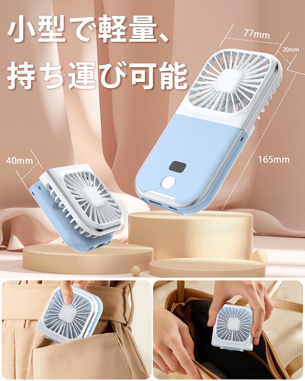 ハンディファン 携帯扇風機 手持ち扇風機 首掛け 小型 卓上 4段階風量調節 折り畳み スタンド機能 小型 静音 熱中症対策 父の日 母の日 記念日 誕生日プレゼント お祝い (ブルー)