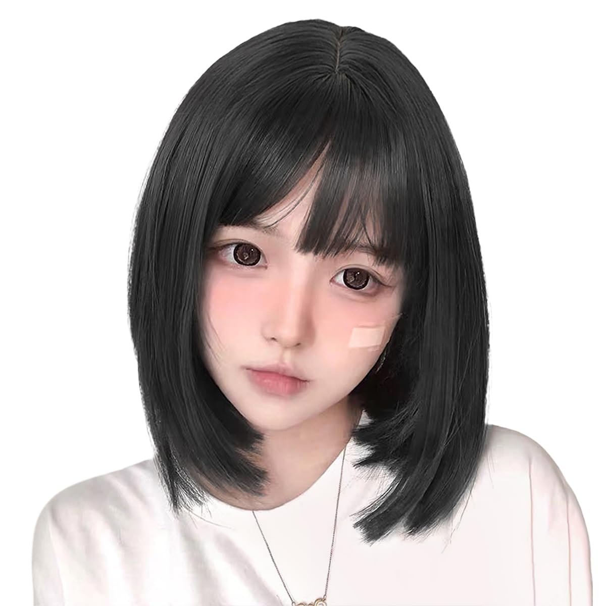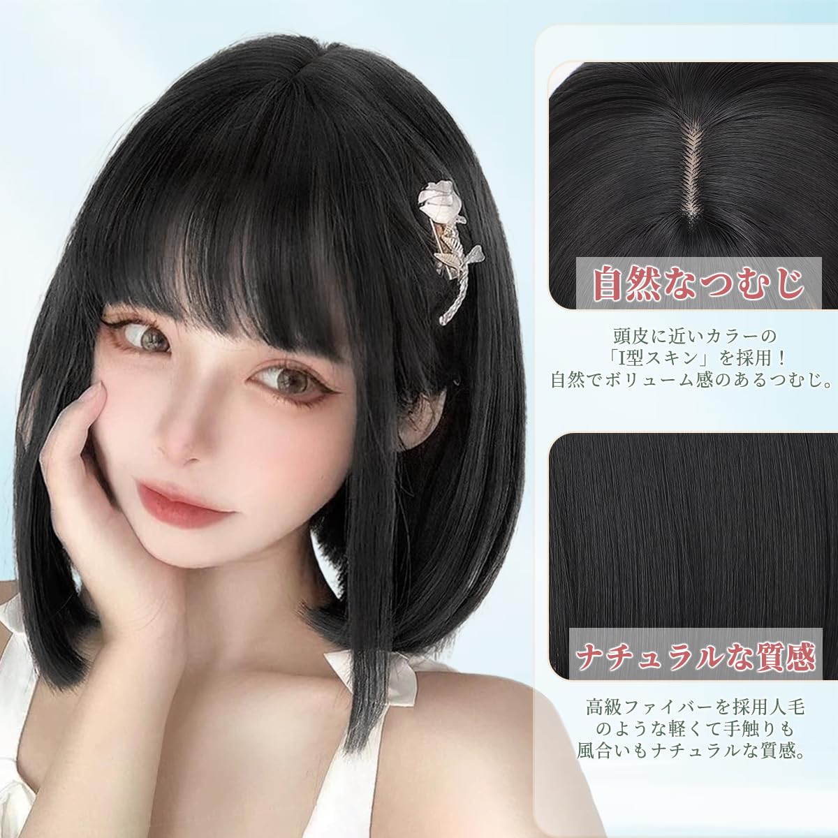 AISIHAIRウィッグ ボブ 黒 ブラック ショートボブ フルウィッグ 自然 日常 小顔 耐熱 ロリータ ナチュラル 原宿系 女装 かつら ネット付き