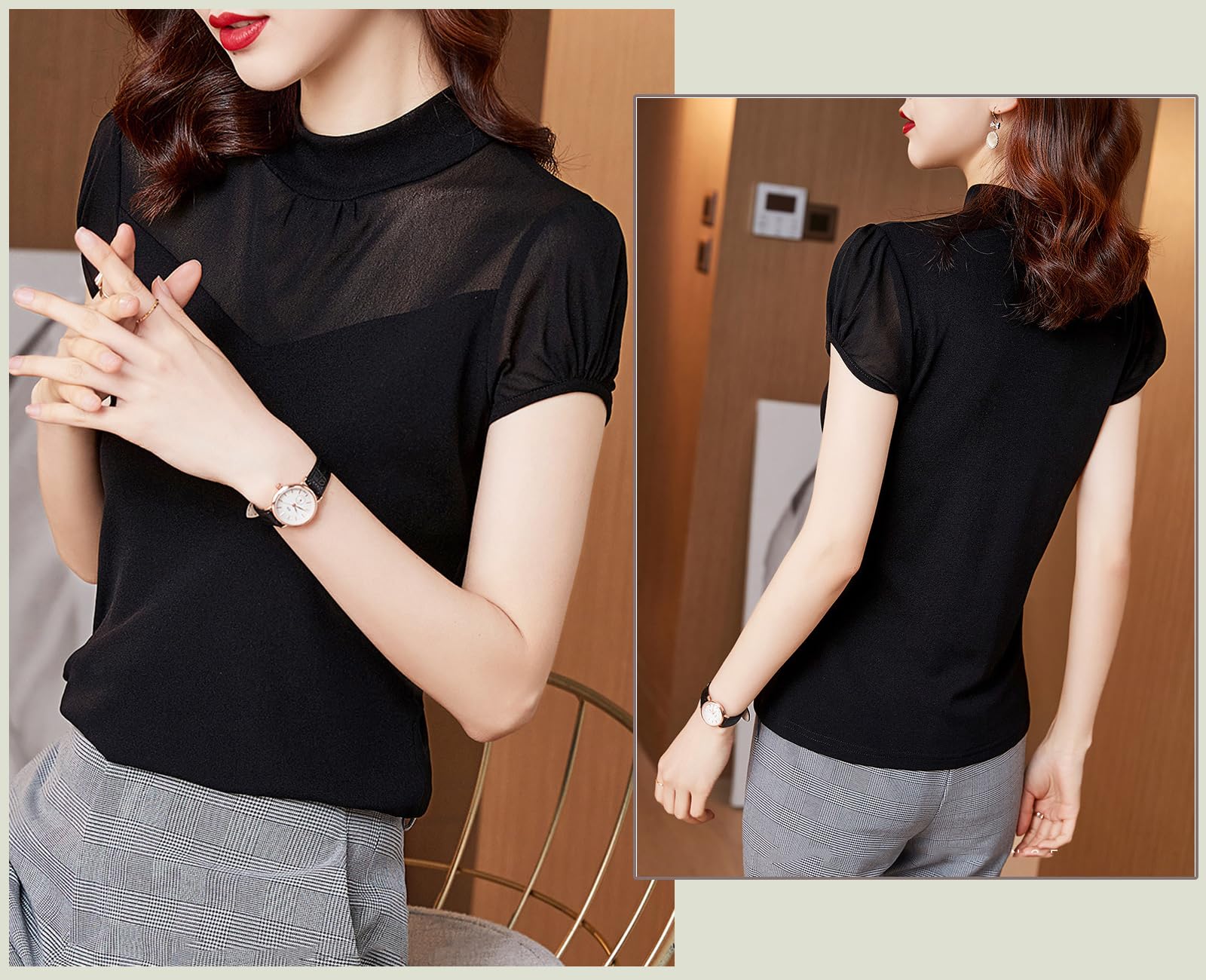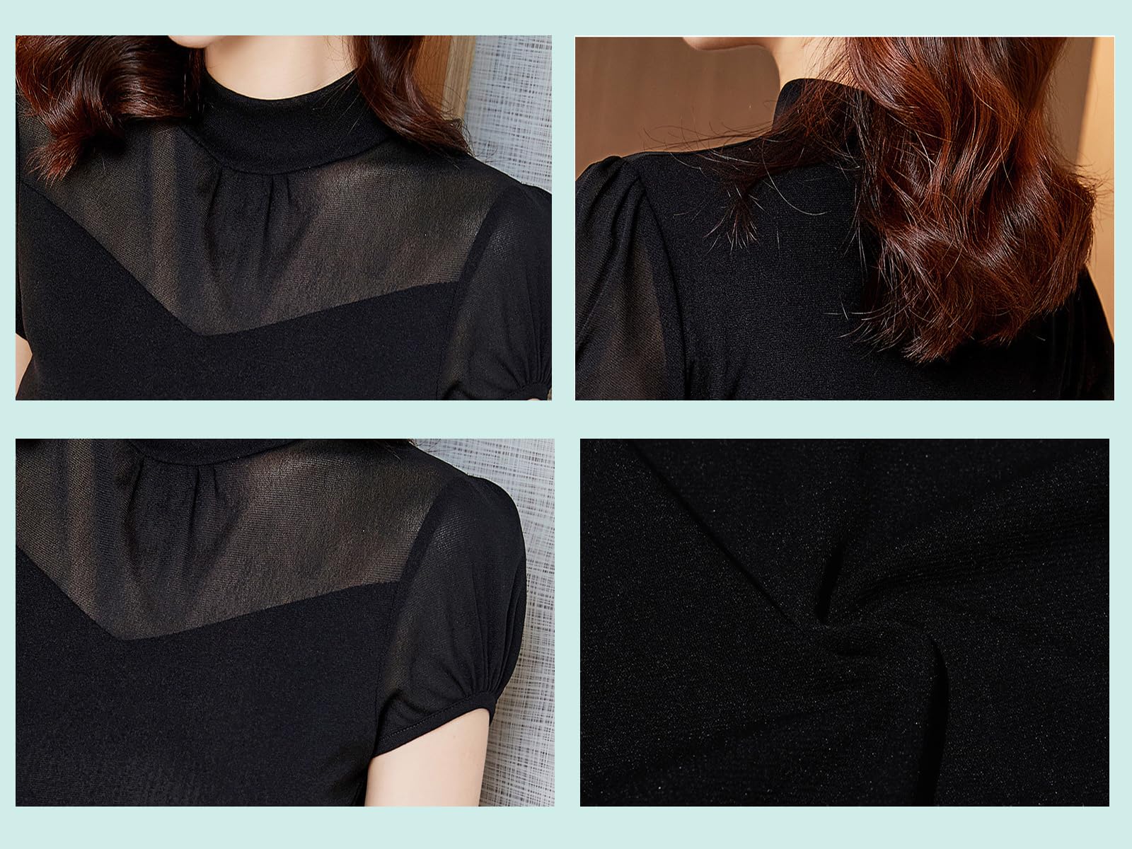 [優億] シアー 半袖Tシャツ トップス レディース ハイネック シースルー 透け感 セクシー ブラウス 薄手 黒 シースルー 着痩せ スリム 細身