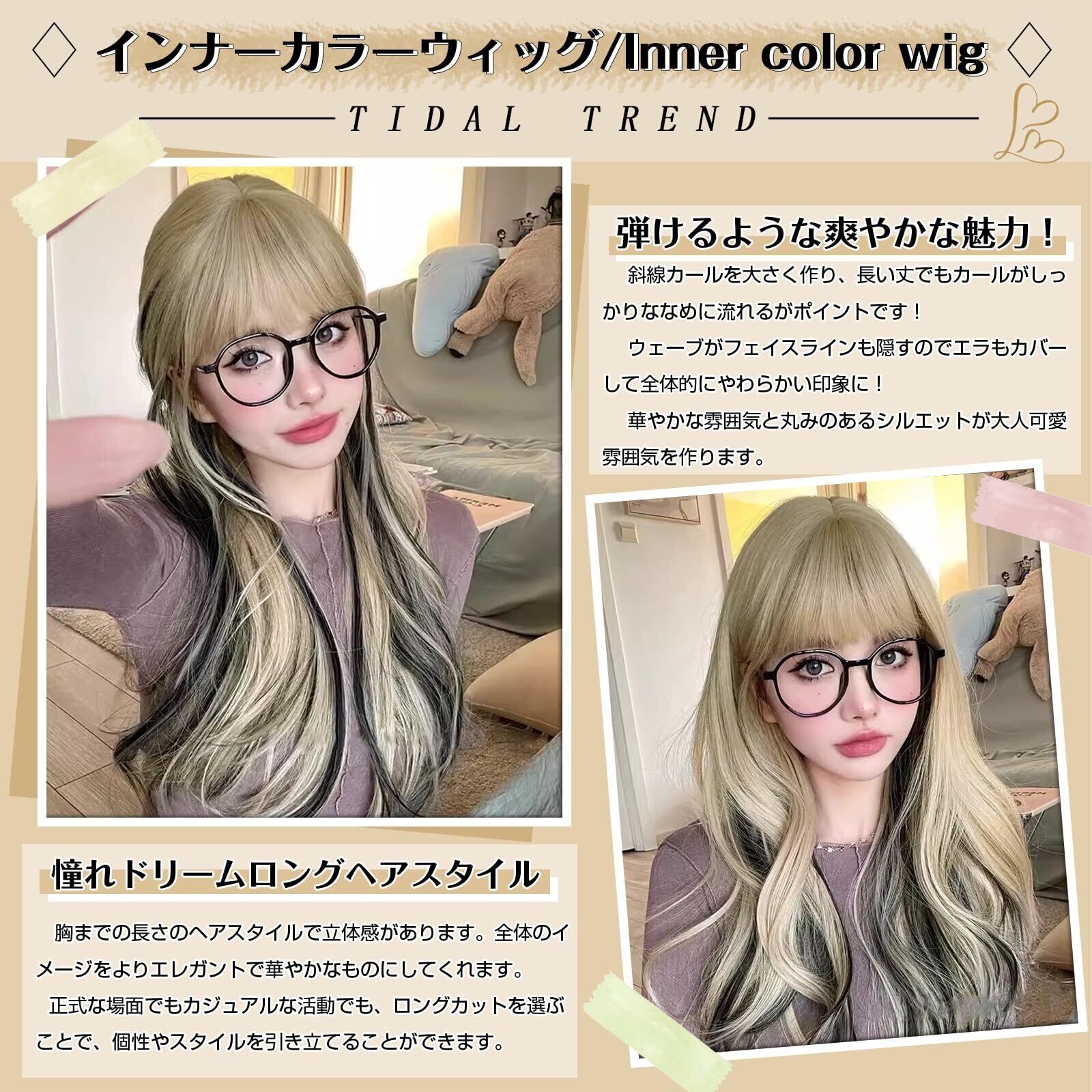 豊富なカラー魅力を引き出す色を選びました単色もインナーカラーも用意しているので、同じスタイルでもまったく違う印象になります!女の子らしい感じで、夢のように見えます。普段使いだけでなく、仮装やコスプレ、女装にも使えるロングカールフルウィッグです。※(商品写真はできる限り実物の色に近づけるように加工しておりますが、お客様がご使用のモニター設定や部屋の照明により実際の商品の色味と異なる場合があります。予めご了承ください。)※(モデル画像は形を整えています、弊店が販売しているウィッグのサイズは長いので、取り付ける際、自分に似合うように長さを切ることもできます。)