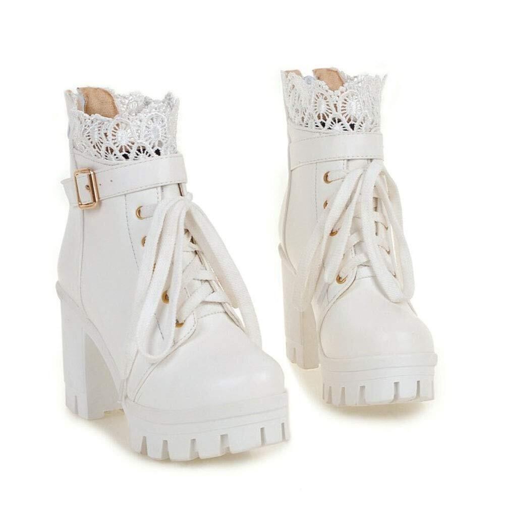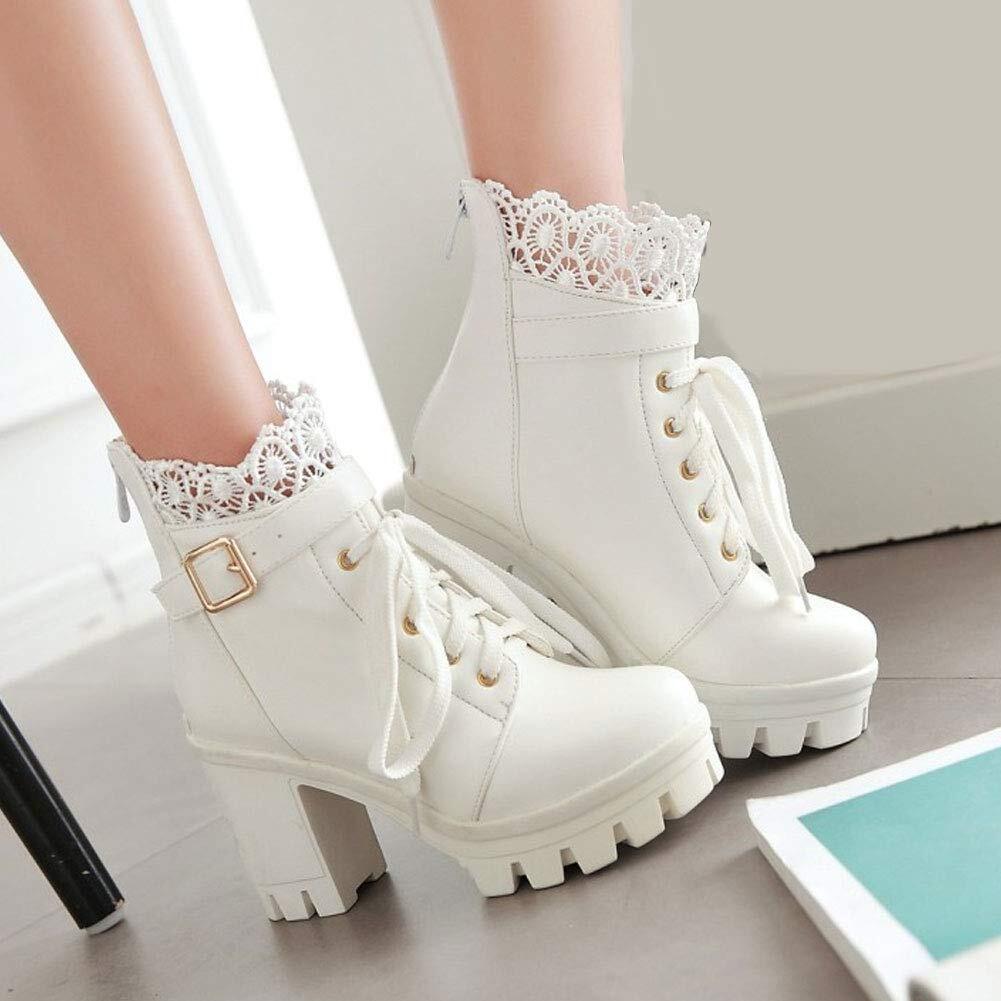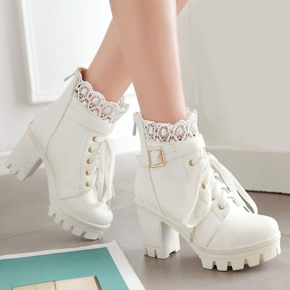 [Guoyupika] ショートブーツ レディース コスプレシューズ レース付き 黒 白 PU ショート丈 ハイヒール レースアップブーツ おしゃれ 無地 歩きやすい 通勤 通学 大きいサイズ